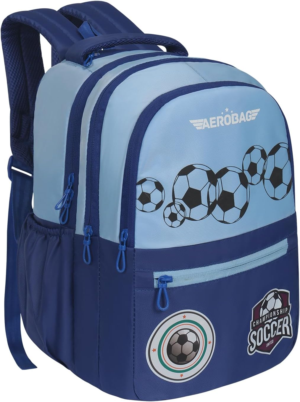 Aerobag Soccer Champ School Bag (Powder Blue & Navy Blue)