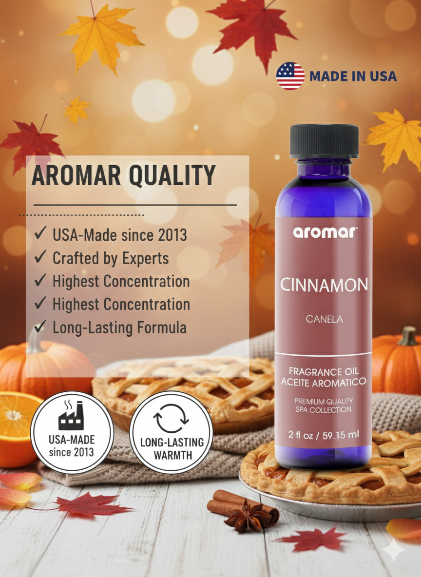 Ignite your senses with the Aromar Spa – Cinnamon Aromatic Oil (59.15ml), a bold and inviting fragrance that wraps your space in the warmth of spice and comfort. Perfectly balanced with sweet cinnamon bark and subtle woody undertones, this oil creates an energizing yet cozy ambiance—ideal for relaxing evenings, festive gatherings, or daily refreshment. Formulated using premium-grade fragrance ingredients, Aromar Spa’s Cinnamon oil delivers a rich, long-lasting aroma that instantly elevates your home or workspace. Whether diffused in the air, added to candles, or used in potpourri, it fills your environment with the comforting scent of warmth, spice, and energy. Bring home the scent of joy, comfort, and timeless coziness—Aromar Cinnamon is your go-to fragrance for every season.