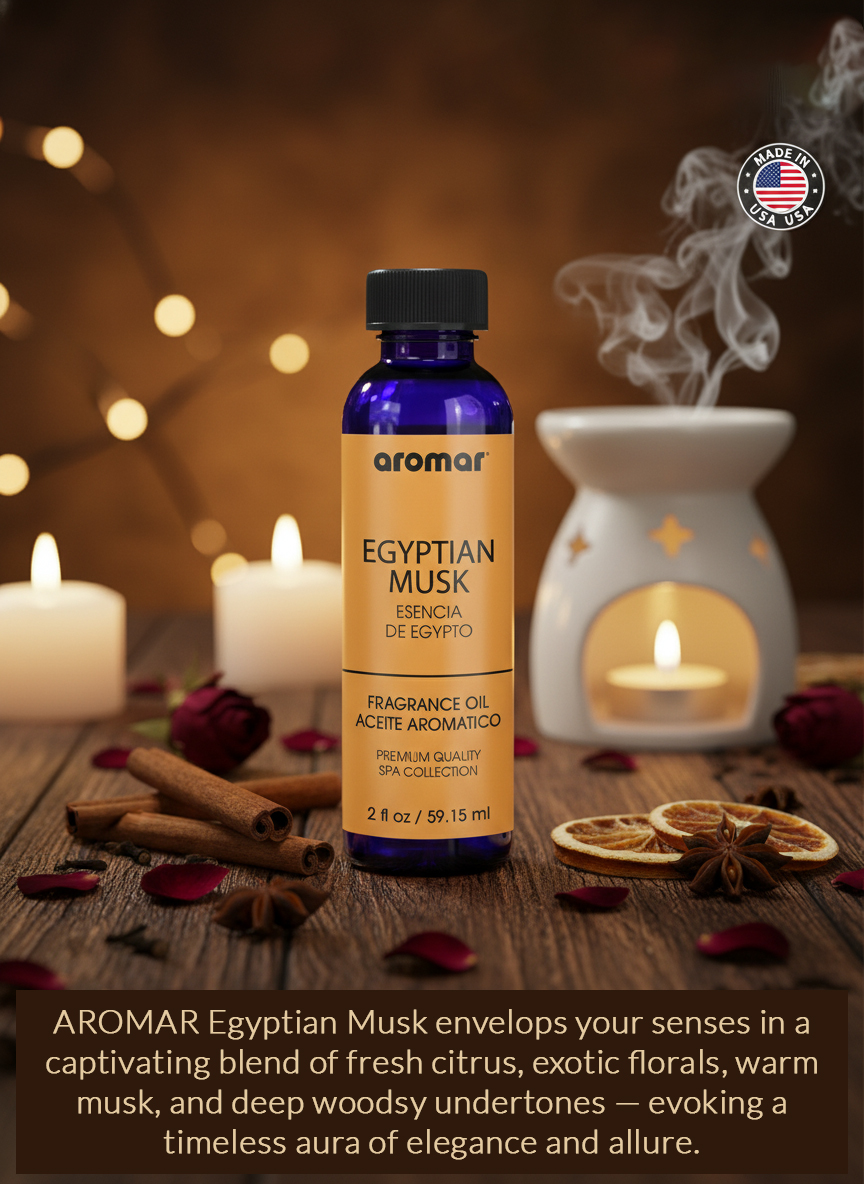 Step into timeless elegance with Aromar Spa Egyptian Musk Aromatic Oil (59.15ml) – a captivating blend of soft musk, smooth sandalwood, and warm amber undertones that embody sophistication, serenity, and sensuality. This exotic, unisex fragrance has been treasured for centuries for its calming, grounding, and alluring aroma. Perfect for meditation, relaxation, or intimate evenings, Egyptian Musk transforms your home or spa into a haven of peace and balance. Crafted with premium aromatic ingredients, Aromar Spas Egyptian Musk offers a long-lasting, luxurious scent experience that enhances your mood, freshens the air, and uplifts your spirit with every drop.