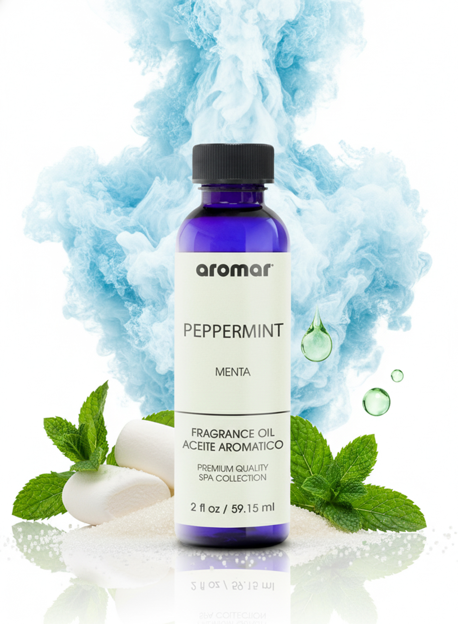 Awaken your senses with the invigorating freshness of Aromar Spa Peppermint Aromatic Oil (59.15ml), a crisp, minty fragrance that revitalizes both your body and mind. Known for its cooling and clarifying properties, peppermint has been treasured for centuries for its ability to boost focus, relieve fatigue, and create an instant feeling of renewal. This premium aromatic oil captures the pure essence of peppermint leaves, blending bright menthol tones with subtle herbal undertones to create a scent thats both refreshing and grounding. Perfect for diffusers, humidifiers, candles, and wax melts, Aromar Spas Peppermint oil delivers long-lasting, spa-quality freshness that purifies the air, energizes the spirit, and transforms your space into a sanctuary of crisp, cool calm.