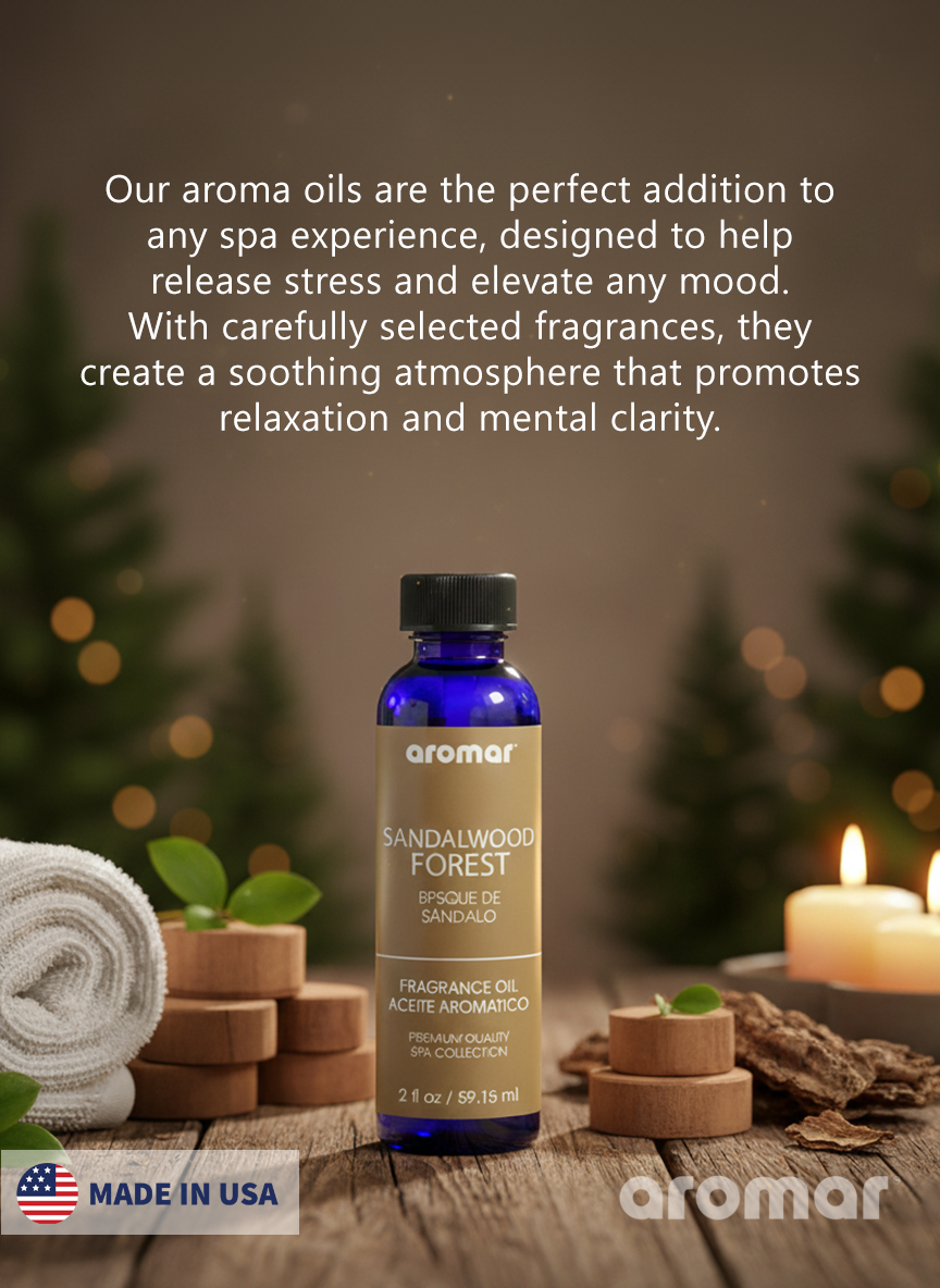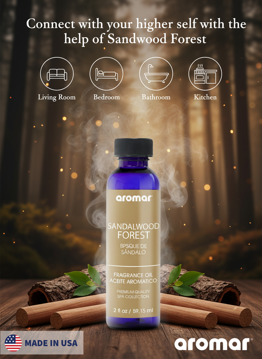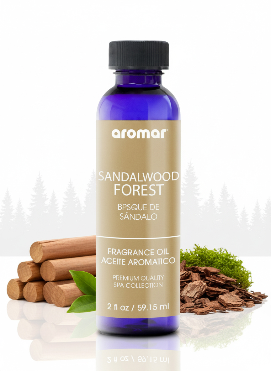 Step into natures serenity with Aromar Spa Sandalwood Forest Aromatic Oil (59.15ml), a fragrance that captures the timeless allure of pure sandalwood surrounded by earthy woods and soft amber tones. Known for its soothing and meditative qualities, sandalwood has been cherished for centuries for grounding the mind, calming the soul, and enhancing spiritual focus. This luxurious blend creates an atmosphere of warmth, depth, and sophistication, making any space feel inviting, tranquil, and beautifully balanced. Perfect for diffusers, humidifiers, oil burners, candles, and potpourri, Aromar Spas Sandalwood Forest oil fills your environment with long-lasting, woody richness, ideal for both relaxation and rejuvenation.