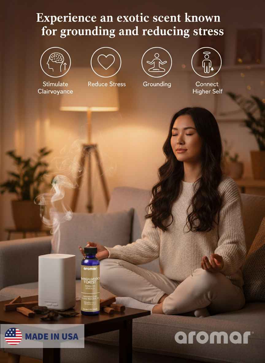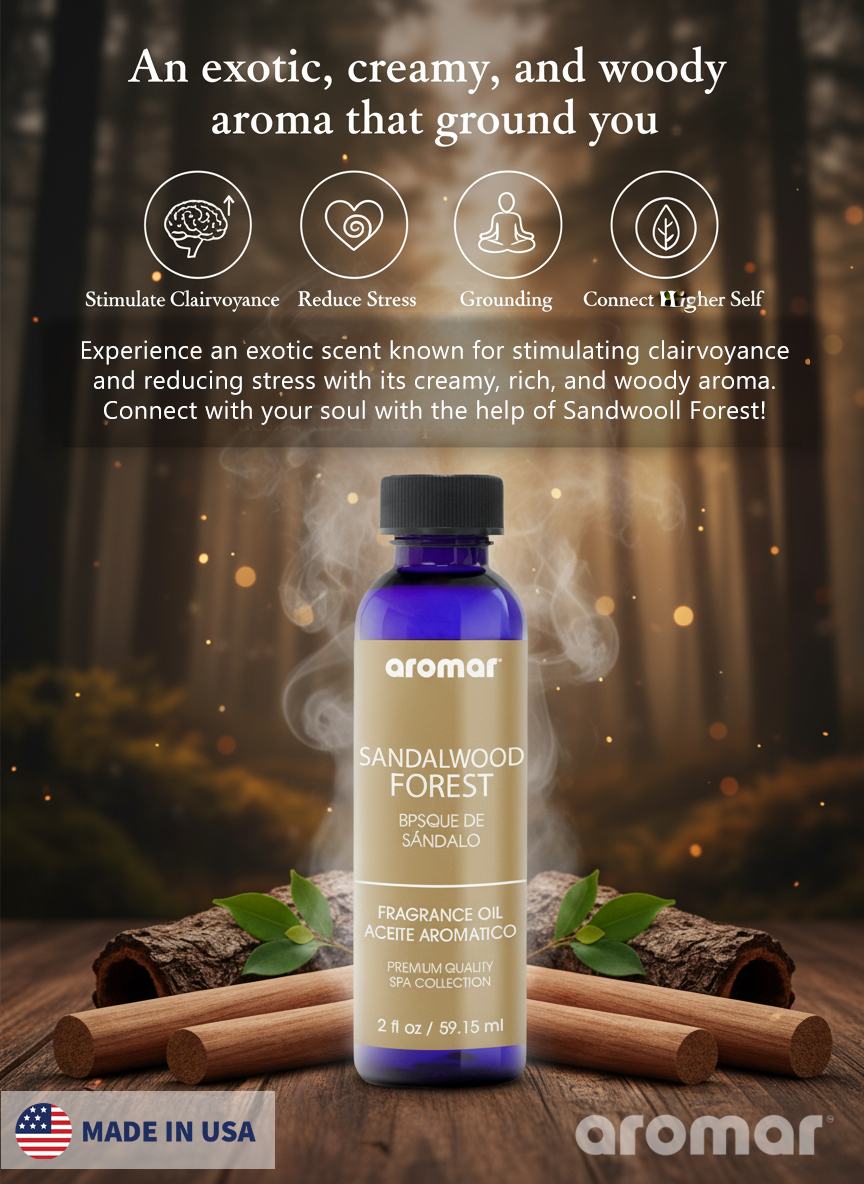 Rich, Woody Aroma: Evokes the calming scent of sandalwood trees with soft amber and earthy undertones
