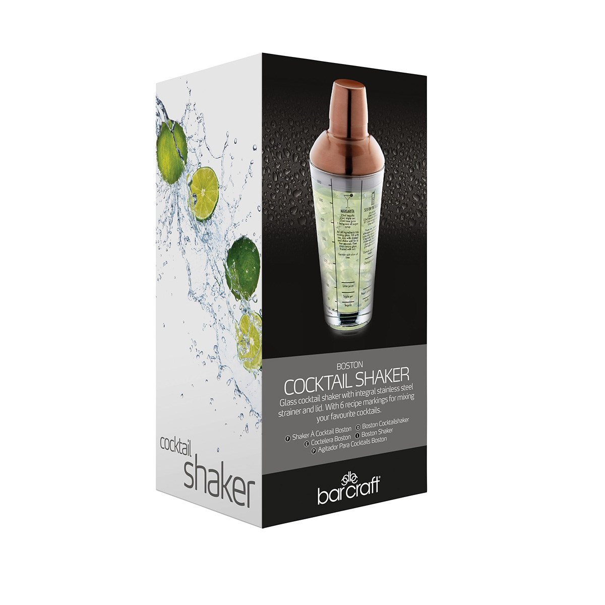 BarCraft Copper Finish Stainless Steel Cocktail Shaker, 550ml, Gift Boxed