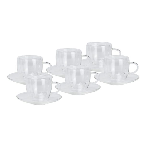 Bd 6 Pcs Glass Cups with 6 Pcs Glass Plates (BD-GLS-C12)