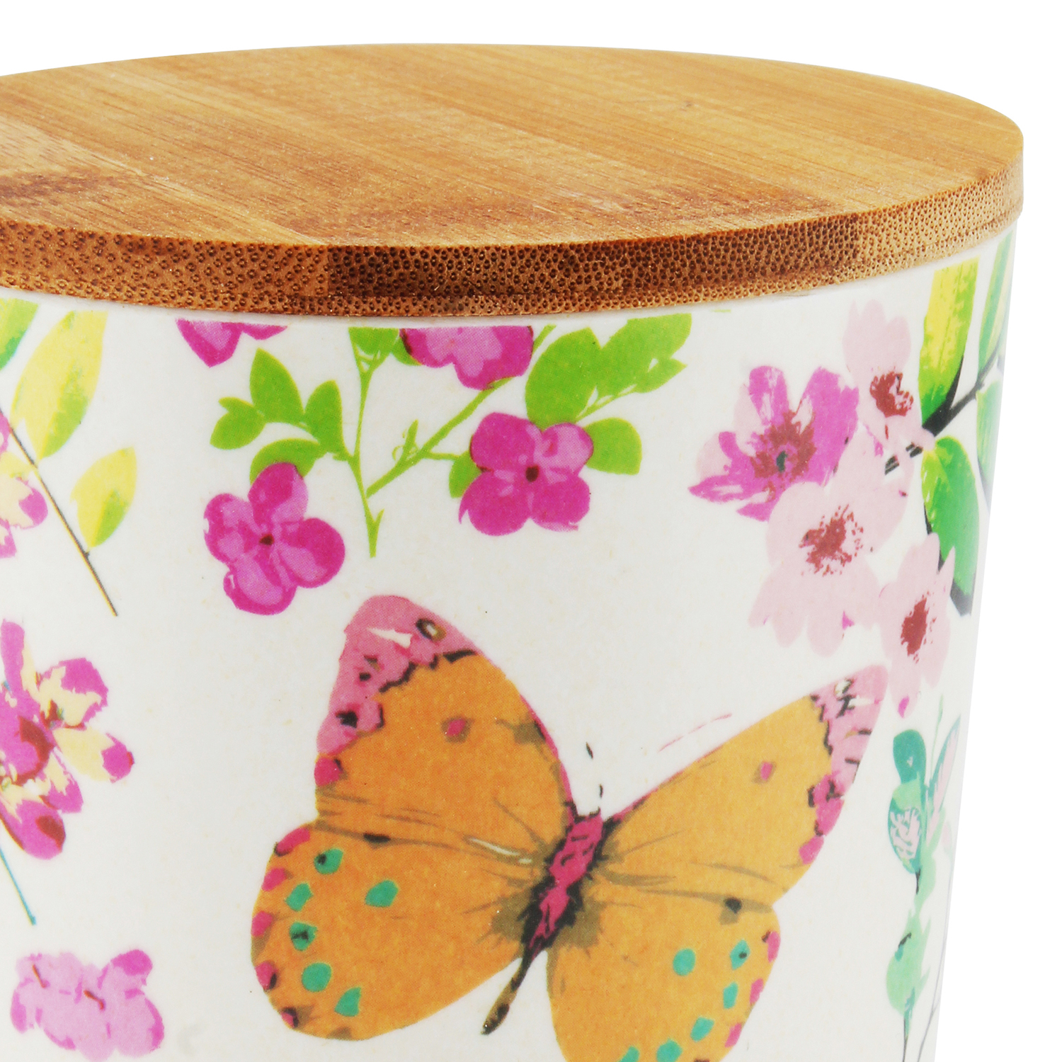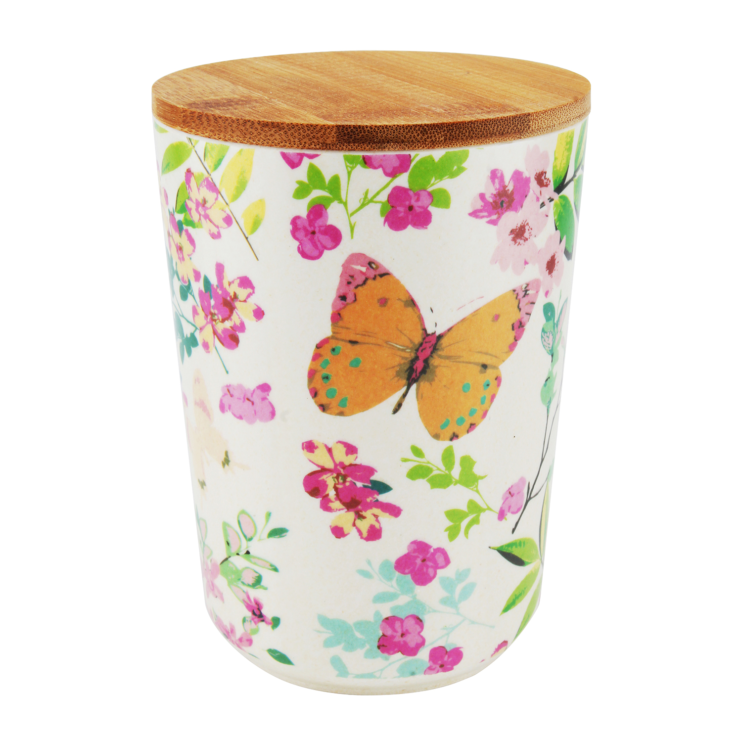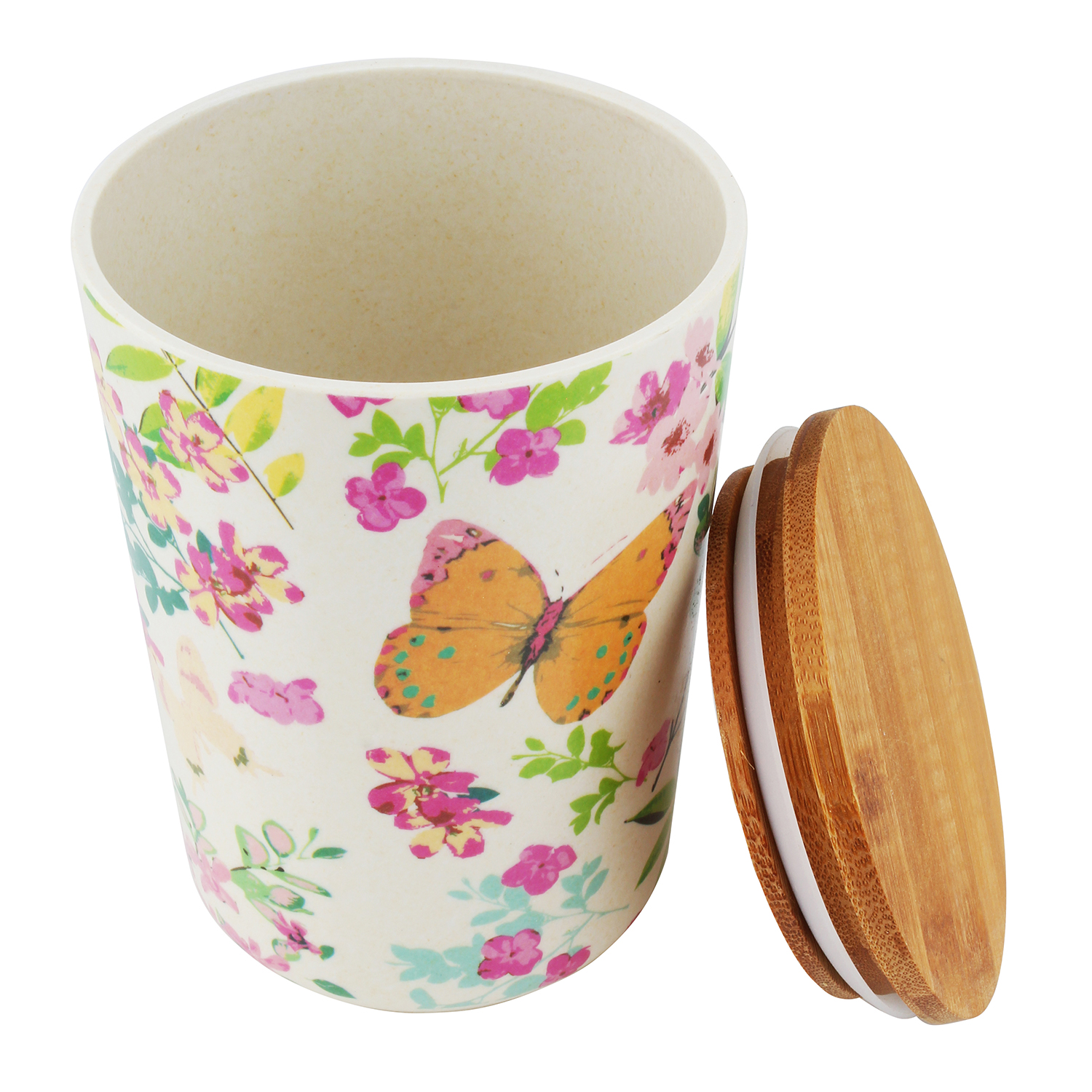 Bd Bamboo Fibre Canister with Flower Design (11 x 15cm)