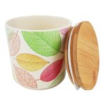 Bd Bamboo Fibre Canister with Leaves Design (10.5 x 10.5cm)