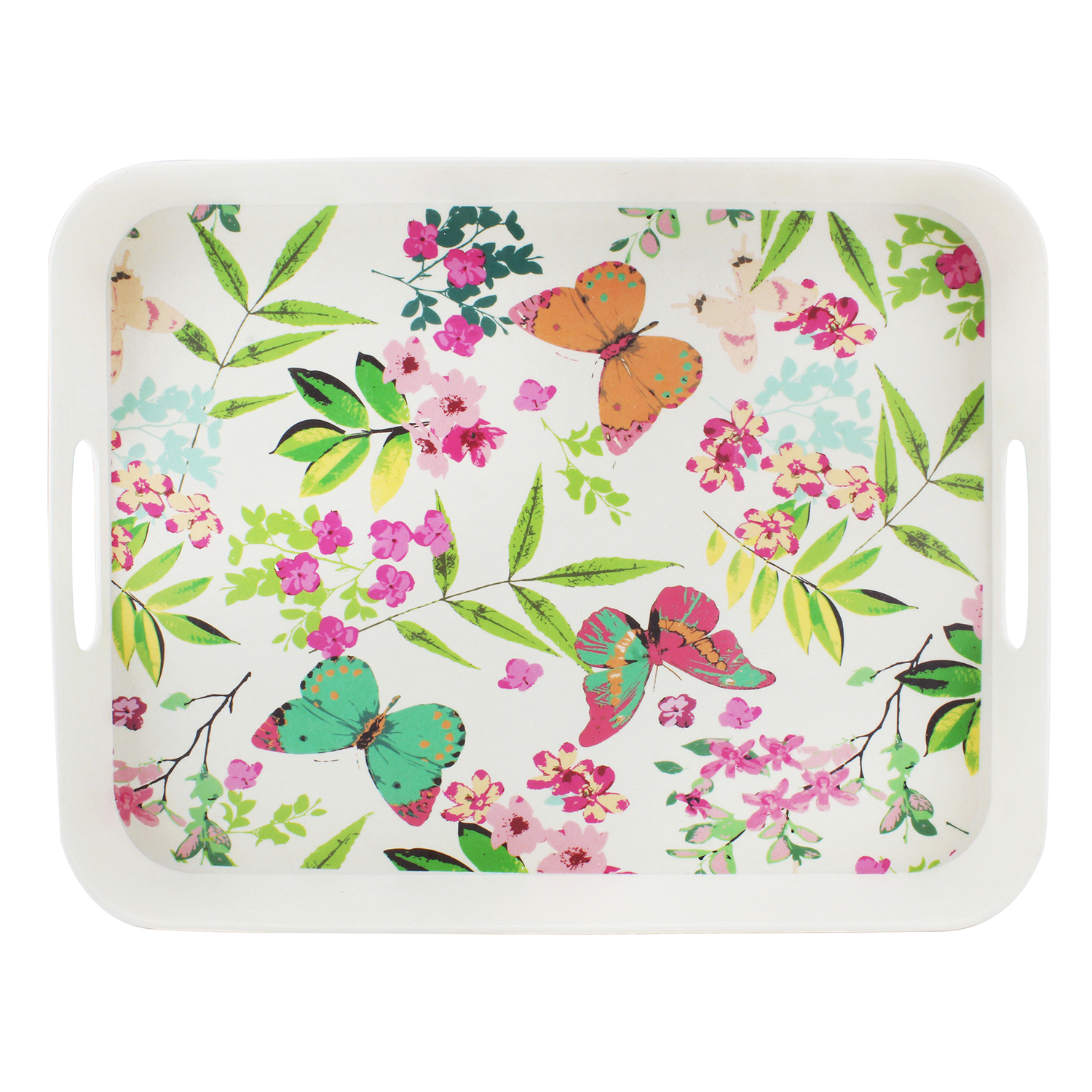 Bd Bamboo Fibre Tray with Flower Design (41 x 32cm)