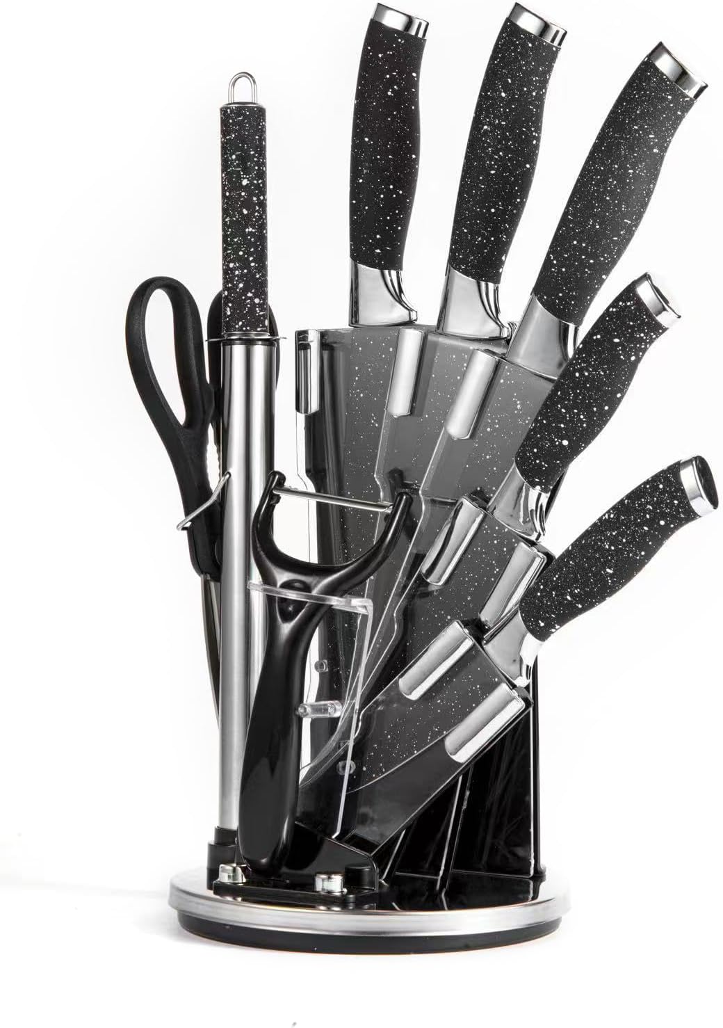 Bd Stainless Steel Knife Set with Granite Black, 9 Pieces
