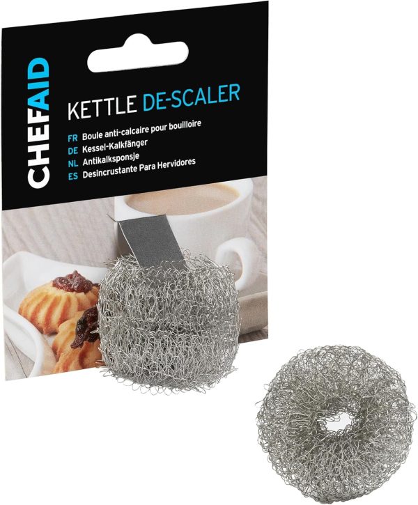 Keep your kettle in top condition with the Chef Aid Kettle De-Scaler. This simple yet effective tool is made from high-quality stainless steel and works by attracting limescale deposits that would otherwise build up in your kettle. Over time, limescale can affect the performance of your kettle, making it less efficient and causing it to boil water more slowly. To use, just place the de-scaler inside the kettle and leave it there during use. As you boil water, limescale will attach to the de-scaler instead of the walls and heating element of your kettle. For best results, be sure to rinse the de-scaler regularly, ensuring long life and continued effectiveness. The Chef Aid Kettle De-Scaler is a reusable solution that helps improve the efficiency of your kettle and saves energy by reducing the time it takes to boil water. It’s a simple, low-maintenance way to keep your kettle working smoothly for longer.