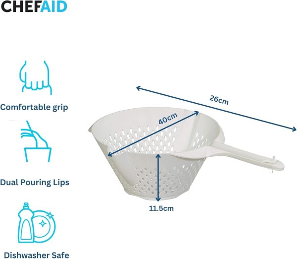 Chef Aid Plastic Colander with Long Handle, 23 cm, White