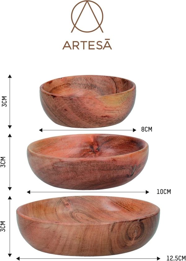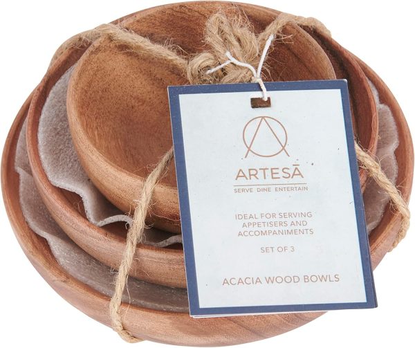 Creative Tops Artesa Acacia Wood Tagged Serving Bowls, Set of 3 (8cm, 10cm, 12.5cm)