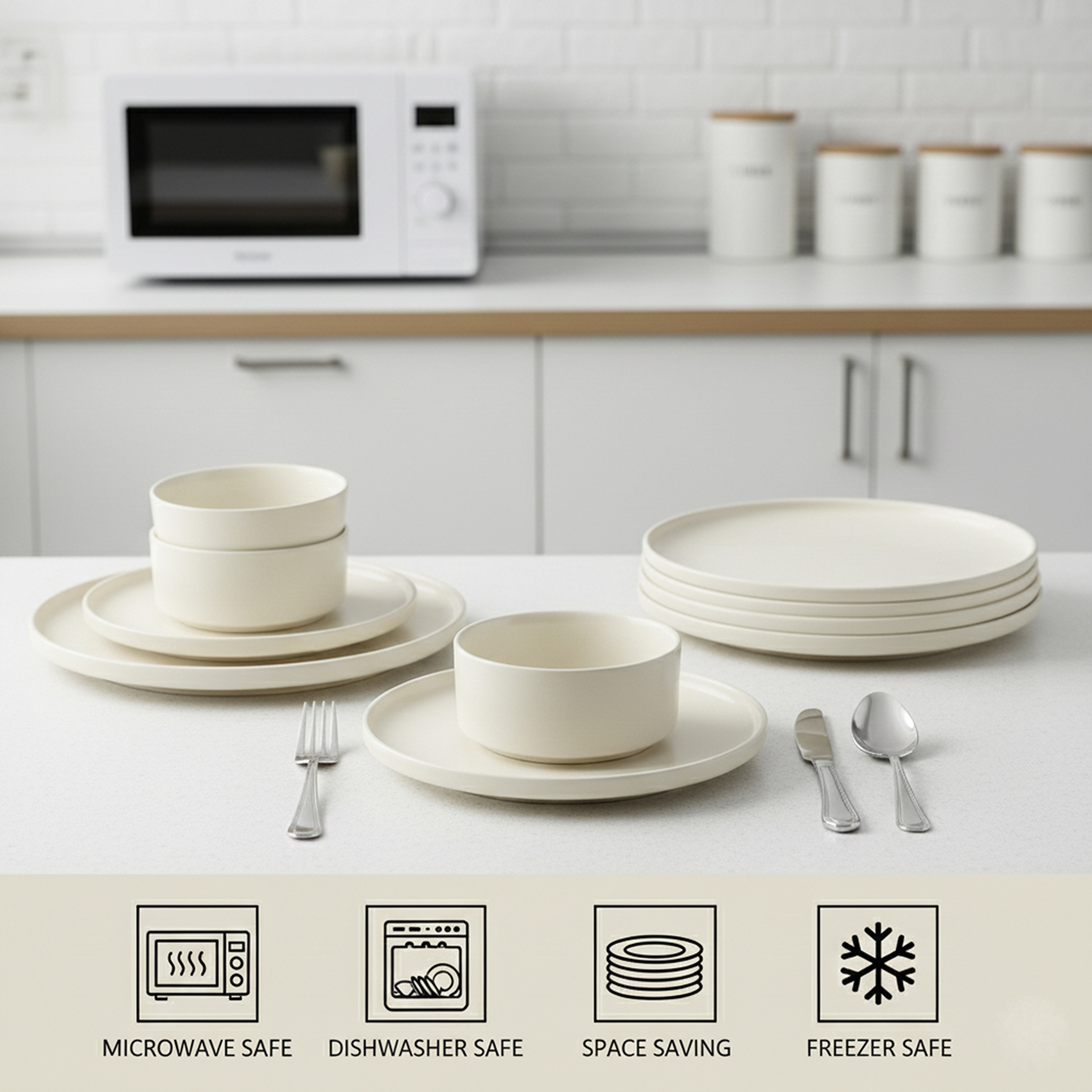 Premium Stoneware Material: Food Safe Crafted from high-quality stoneware with a smooth glazed finish, this dinner set is food-safe and designed for everyday dining with reliable performance