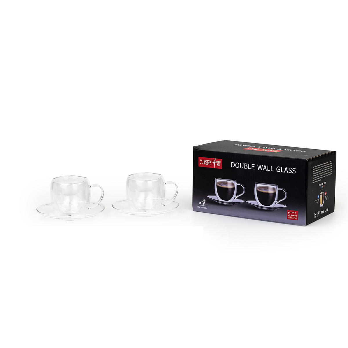 Cuisine Art Borosilicate Glass Double Walled Glass Coffee Cup, 80ml, Transparent, 4 Pieces