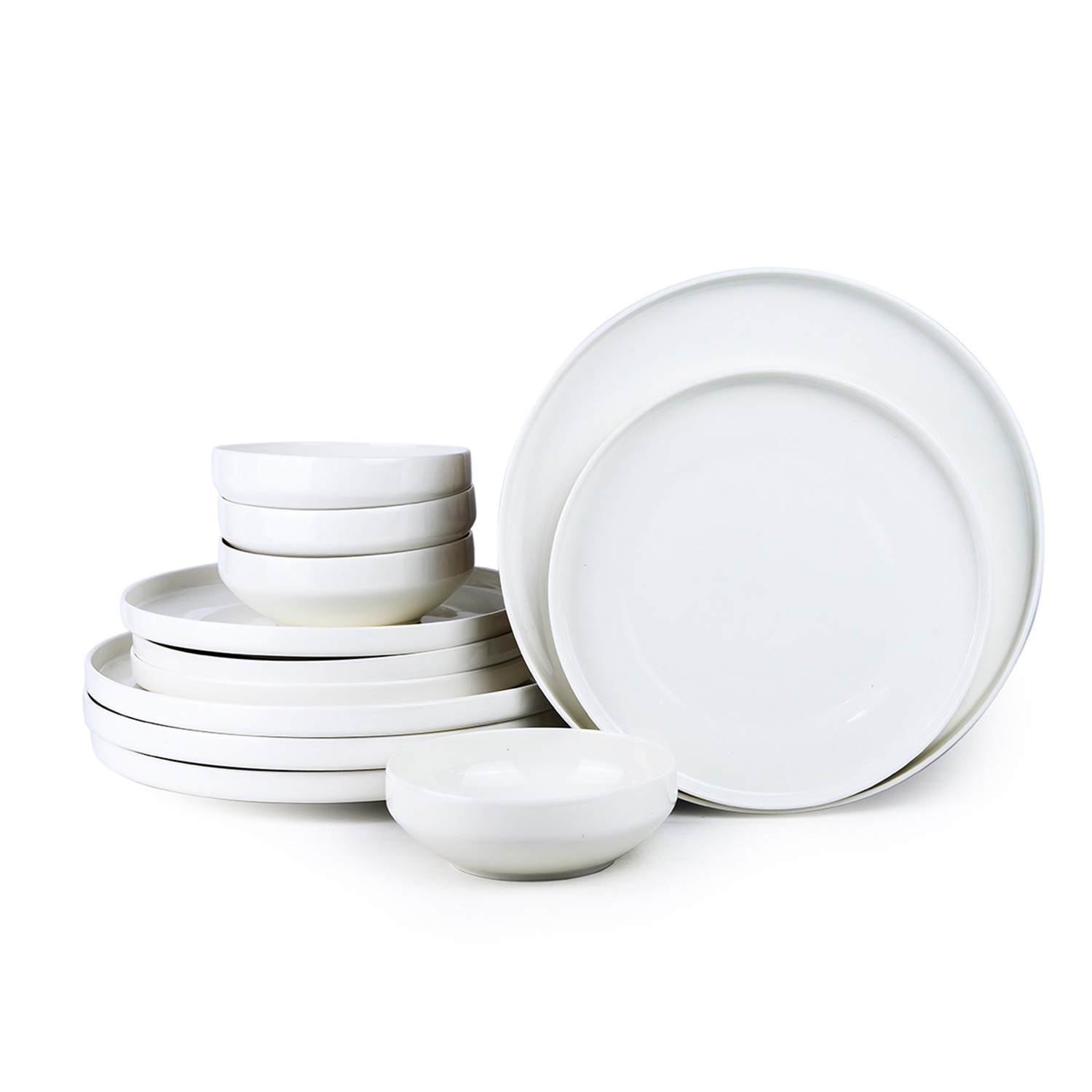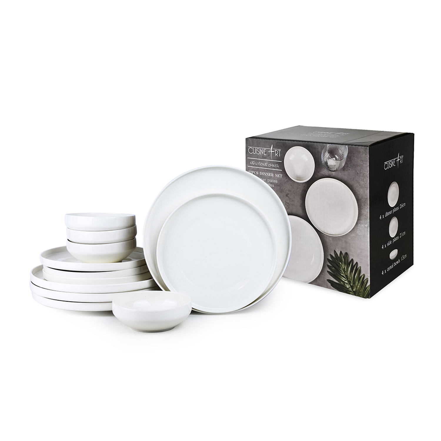 Cuisine Art Chole Bone China Dinner Set for Every Meals – 12 Pieces|4 Dinner Plates Dia (26.4cm) 4 Side Plates, 4 Bowls (Dia 13.3x H4.7cm) White Elegant Plates for Everyday Dining & Special Occasions
