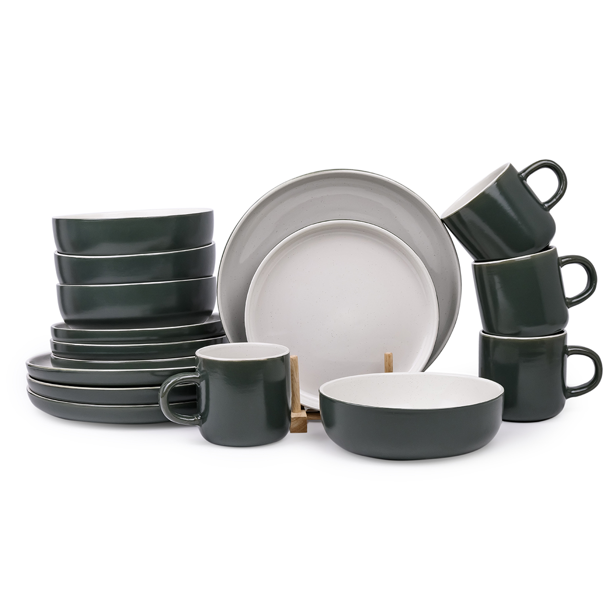 Cuisine Art HUMA 16-Piece Stoneware Dinner Set – Dark Green