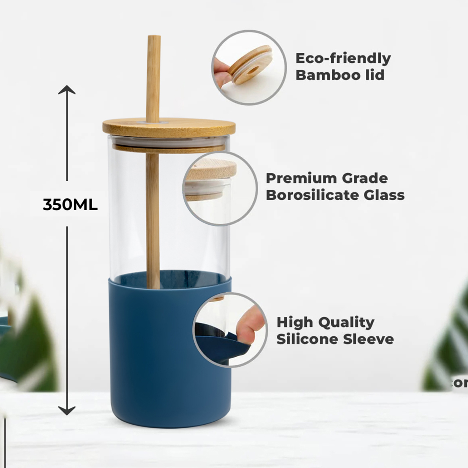 Cuisine Art Moda Glass Bottle with Straw, 350ml