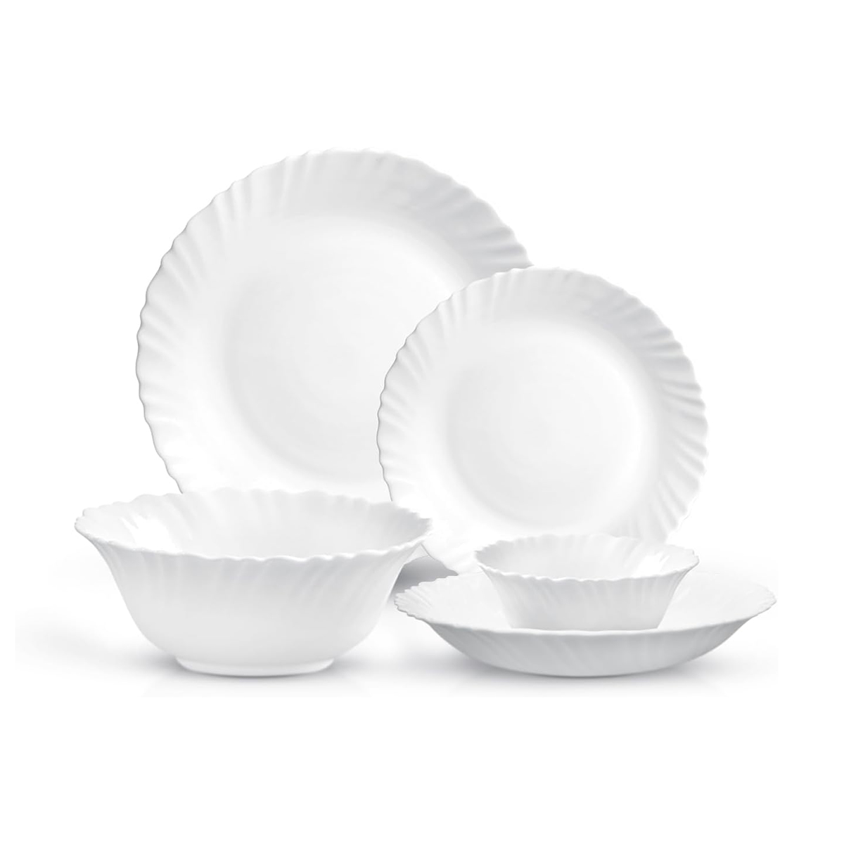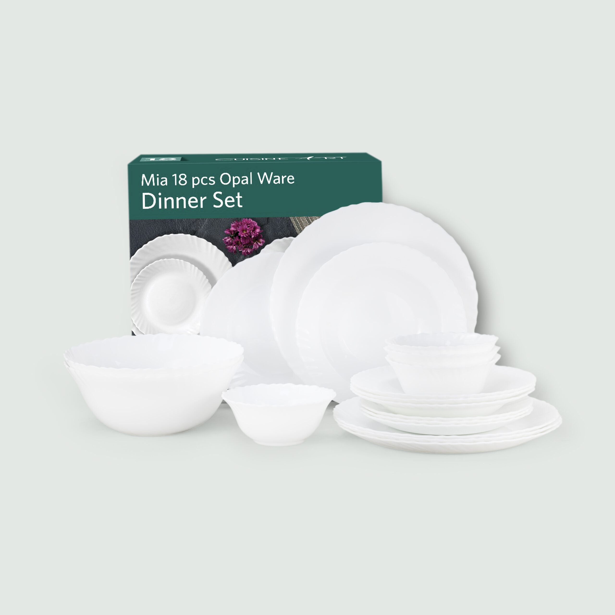 Cuisine Art ORA MIA 18-Piece Opalware Dinner Set, White – Durable Lightweight Opal Glass Crockery|4 Full Plates,4 Quarter Plates,4 Soup Plates,4 Soup Bowls,2 Serving Bowl