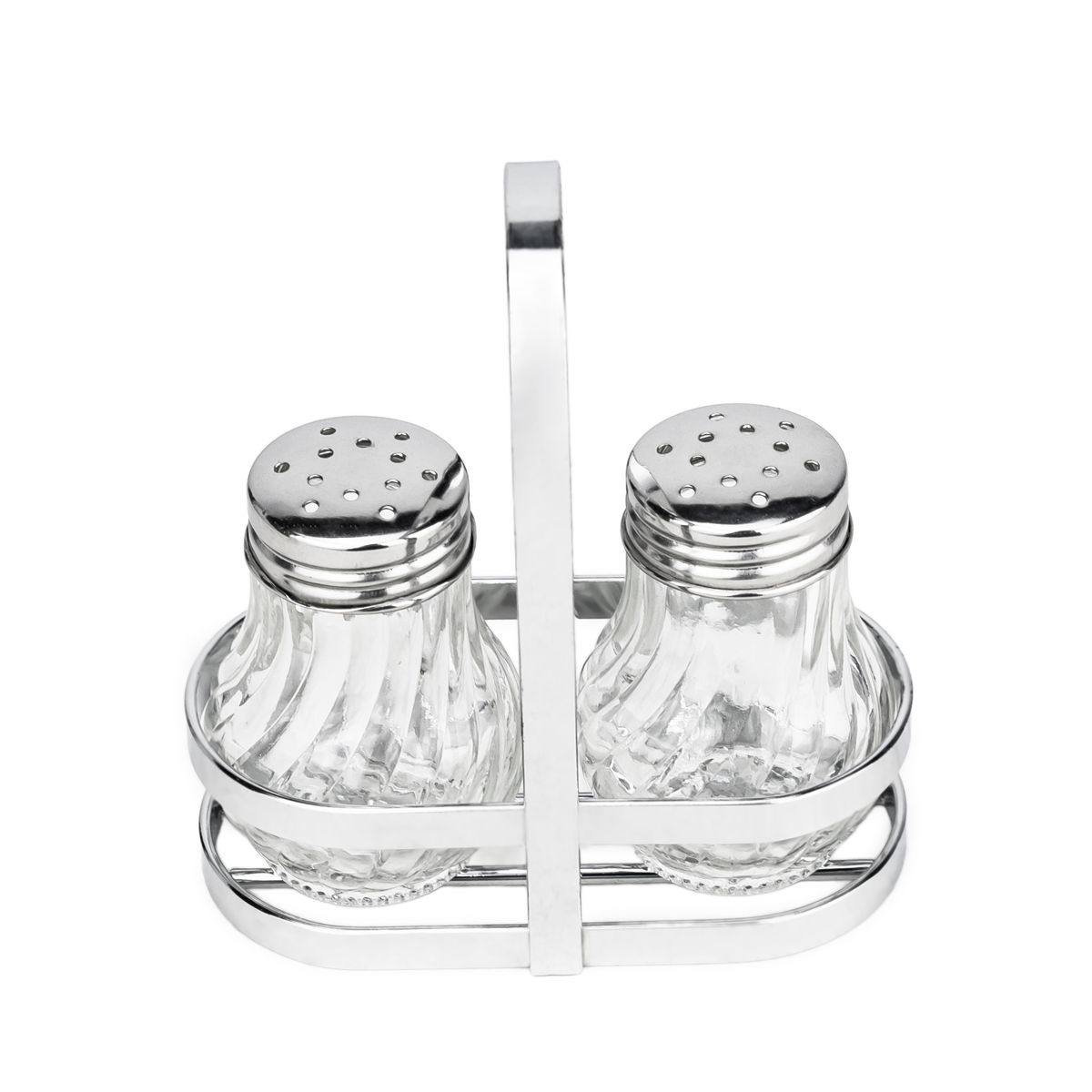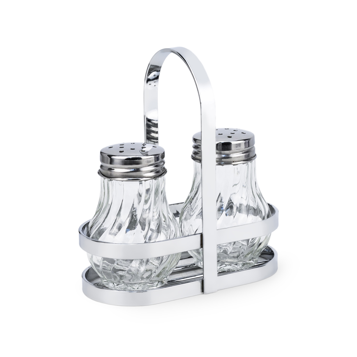 Cuisine Art Soda Lime Glass Salt Set with Stand, 50ml, 2 Pieces, Transparent