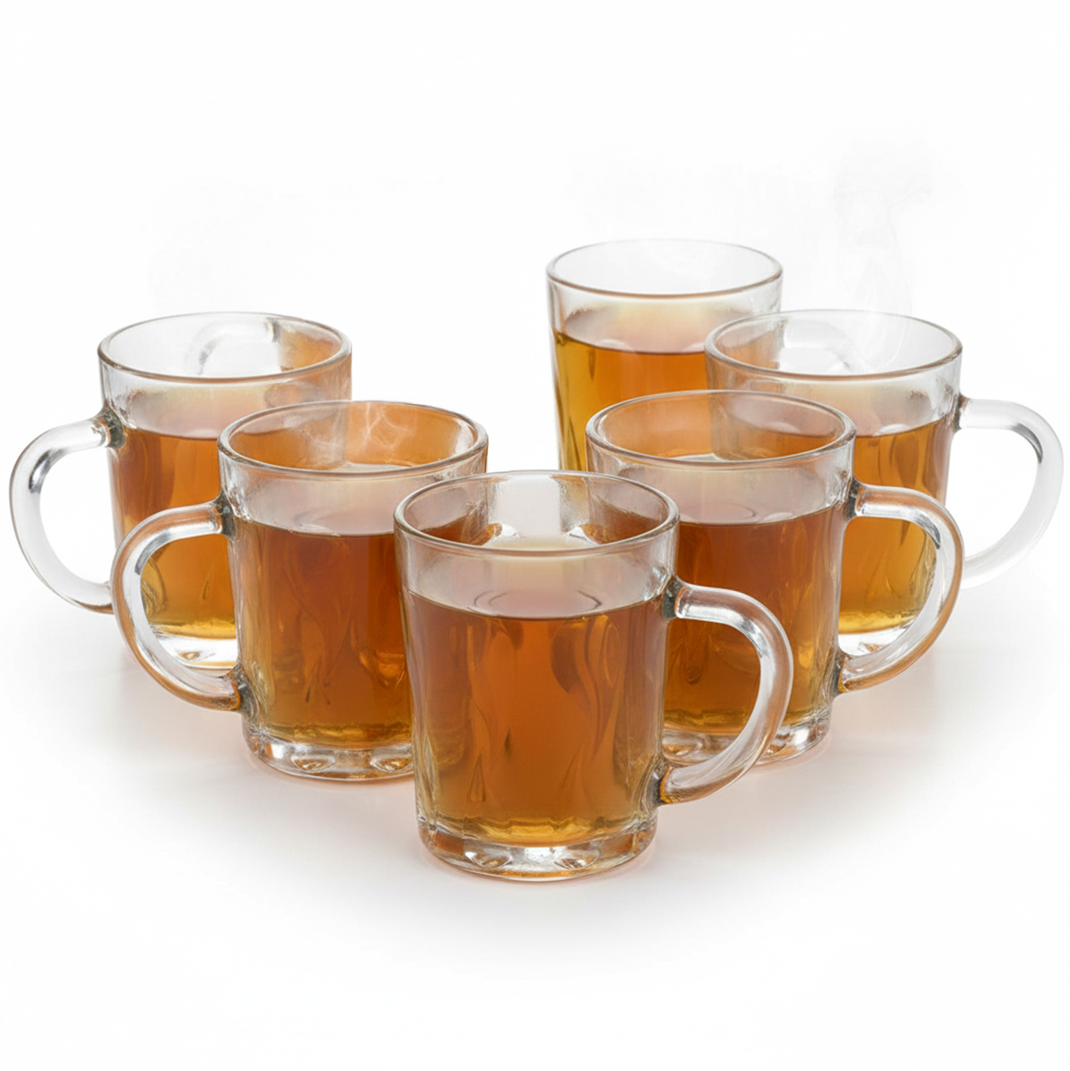 Cuisine Art Soda-Lime Glass Tea Mug 225ml Set of 6 is designed for everyday comfort and simplicity. Crafted from durable soda-lime glass, these mugs offer clarity, hygiene, and reliable performance for daily tea and coffee consumption.Each mug features an approximate 225ml capacity with well-balanced dimensions73mm top diameter, 39mm base diameter, and 88mm heightmaking it comfortable to hold and suitable for hot beverages. The transparent glass finish enhances the visual appeal of tea, coffee, and milk-based drinks. Ideal for daily home use, office pantries, cafés, and hospitality settings, this glass tea mug set blends seamlessly into modern kitchens and dining spaces. Cuisine Art glassware combines functional design with everyday lifestyle convenience.