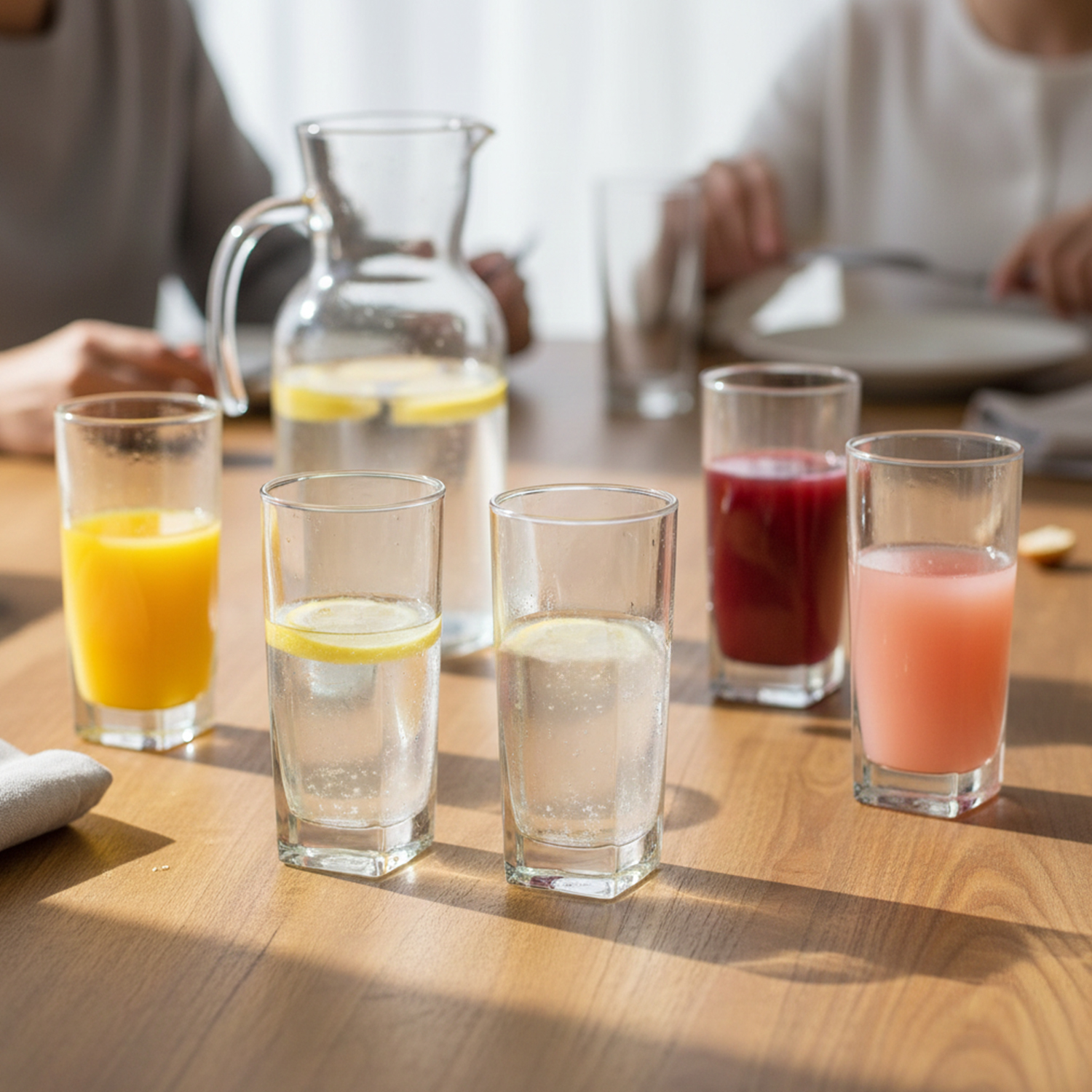 Versatile Daily Use for Multiple Beverages: Perfect for serving water, juice, soft drinks, lemonade, mocktails, iced tea, and cold beverages at home, offices, cafés, and restaurants