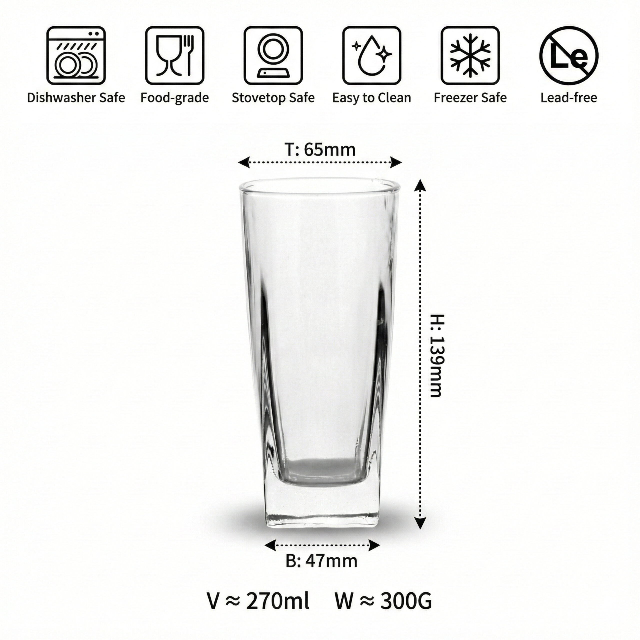 Ideal 270ml Capacity with Balanced Dimensions: Each tumbler offers approx. 270ml capacity with 65mm top diameter, 47mm base diameter, and 139mm height, providing a comfortable grip and stable base