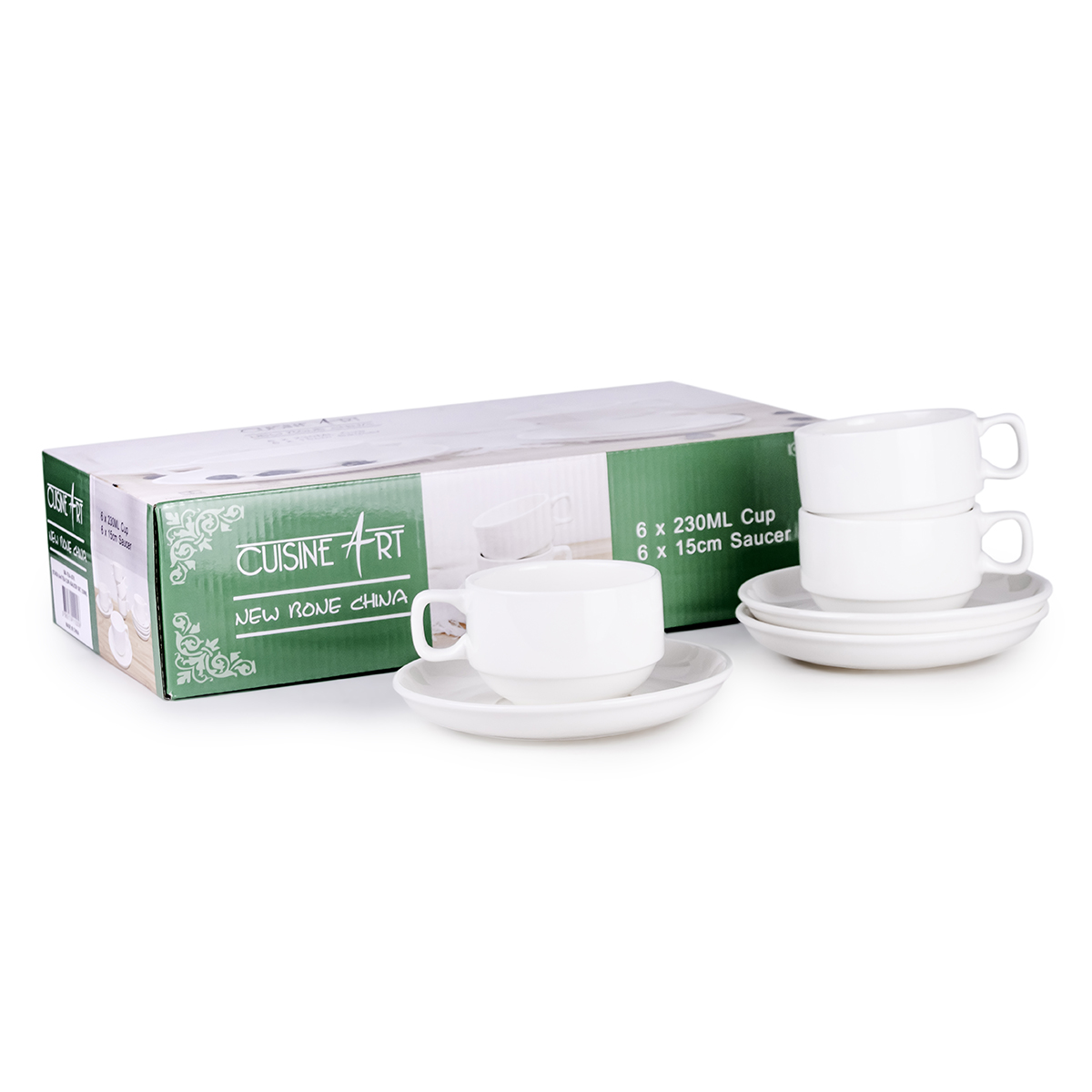 Cuisine Art Stack 6+6 Tea Cup+Saucer Set 230Ml