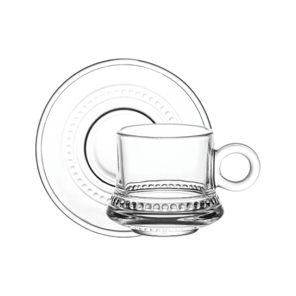 Doyalex Glass Coffee Cup & Saucer Set – 80ml, 12-Pieces, Transparent