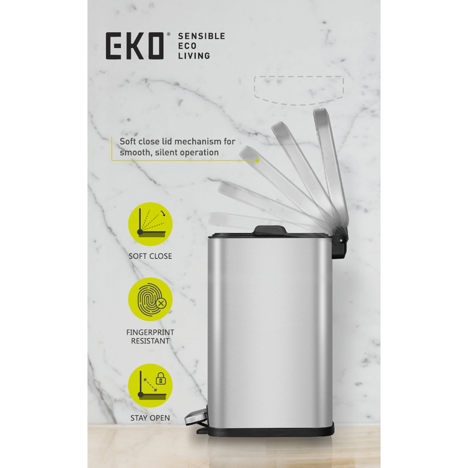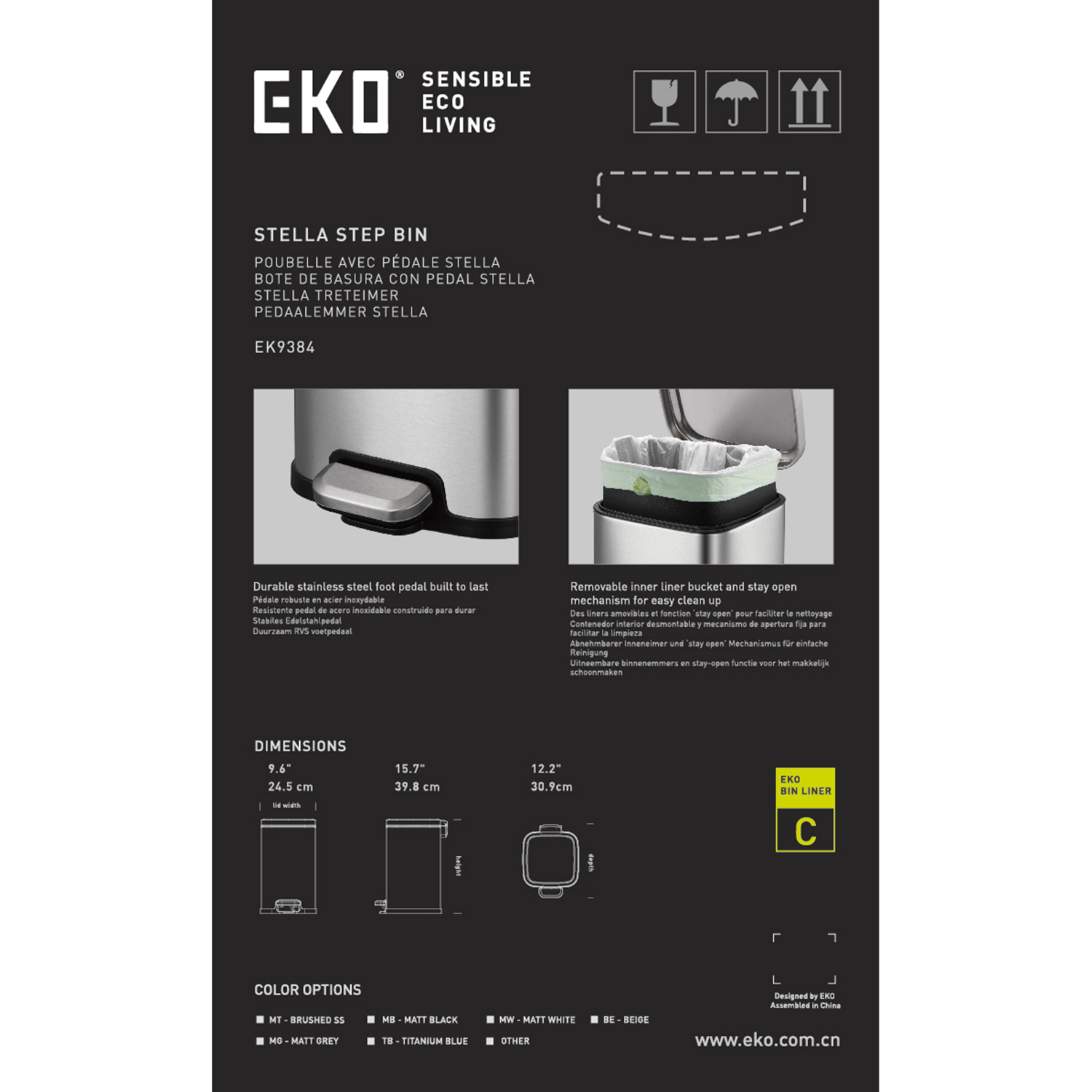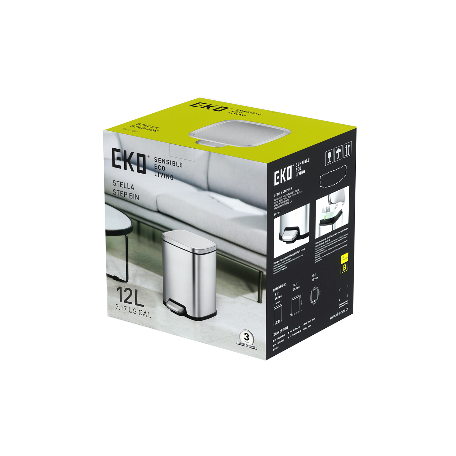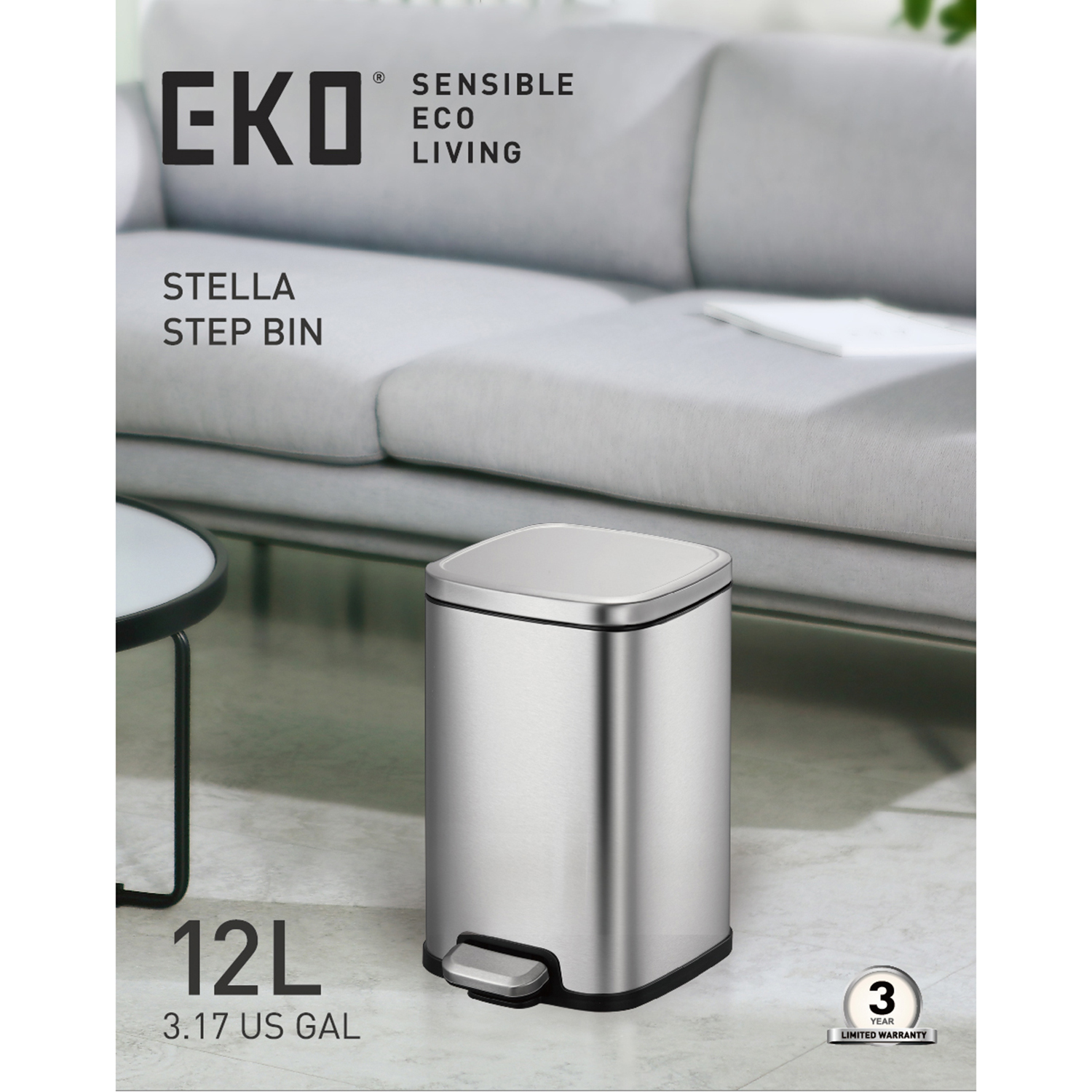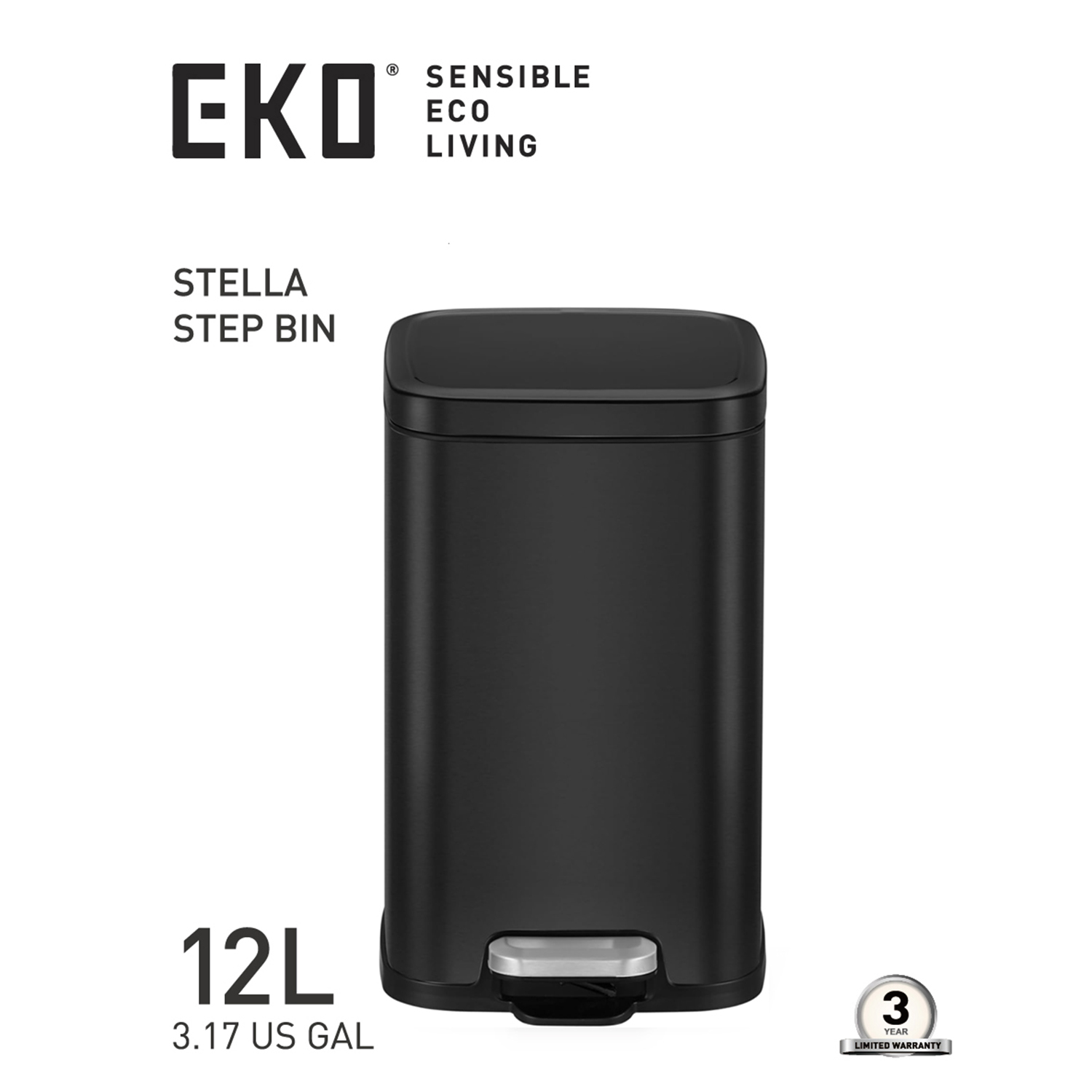 Eko 12L Sqr Step Bin Stella-Black