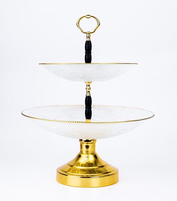 Elenor Capira 2 Tier Plate Serving Set Transparent with Gold Rim & Foot 21cm – 33cm