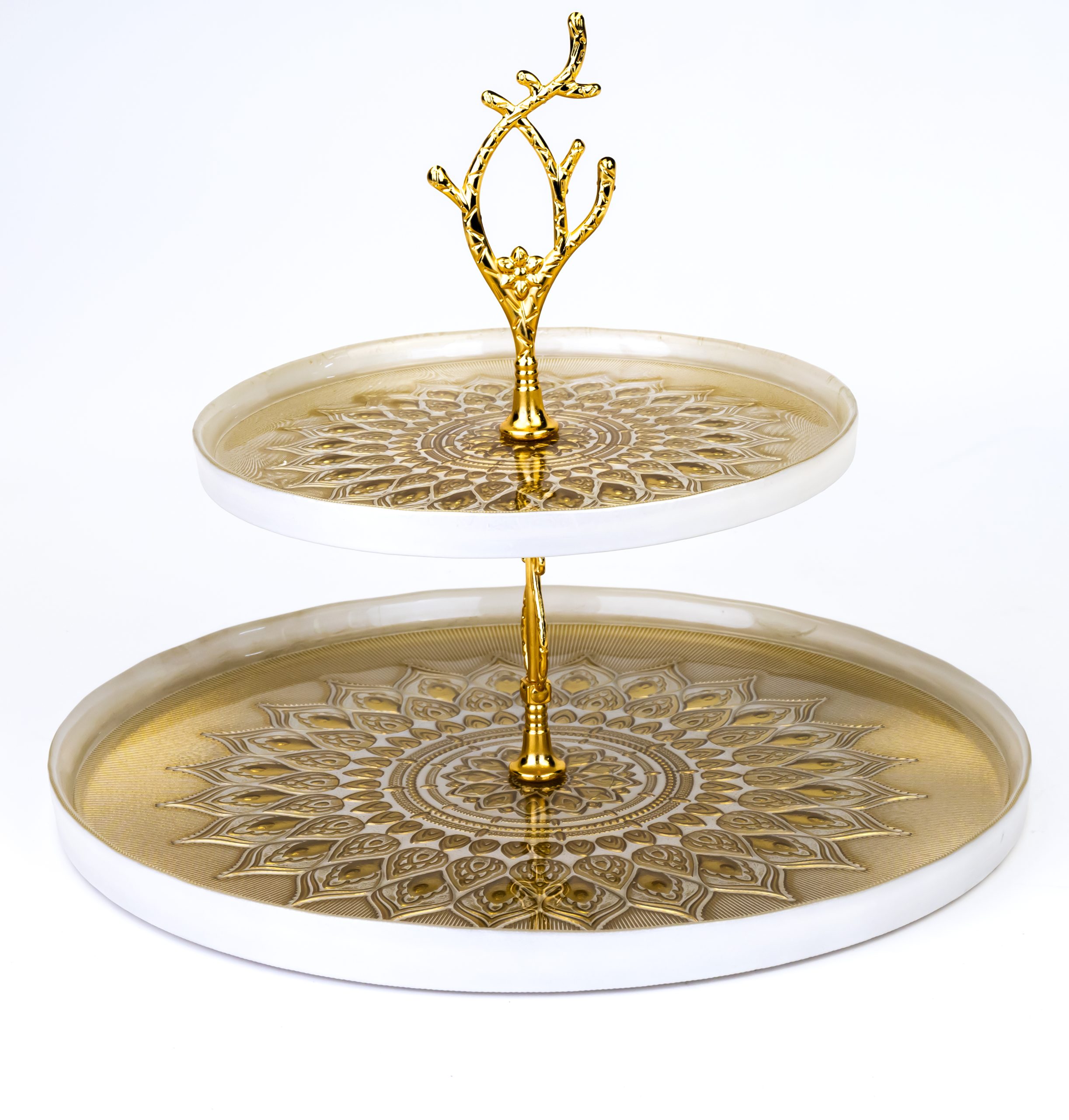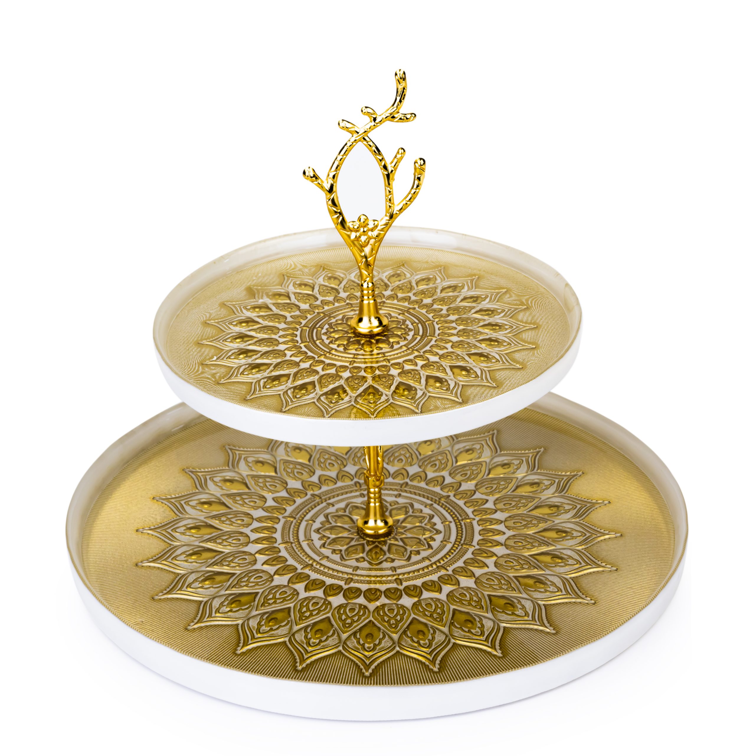 Elenor Kostanay 2 Tier Serving Set White and Gold 21cm – 33cm