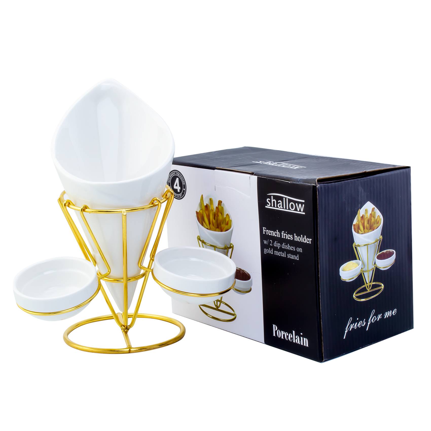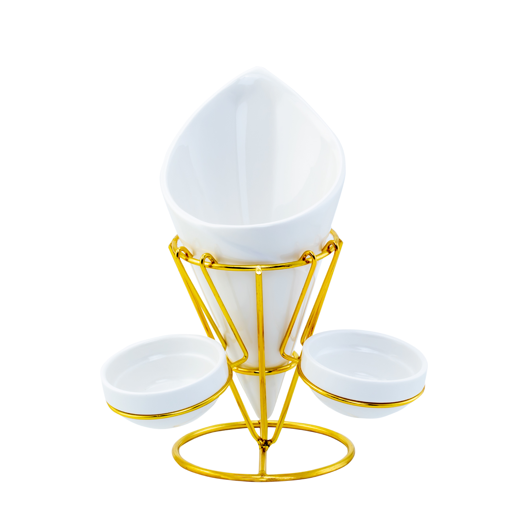 French Fry Holder W/2dip Dishes W/Gld S/Stnd
