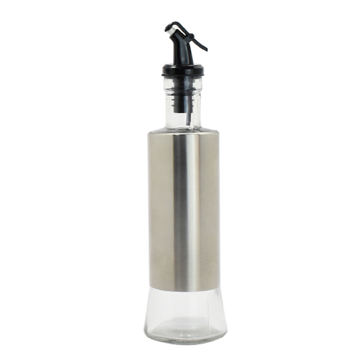 Cuisine Art Soda Lime Glass Oil Bottle, 300ml, Silver & Transparent