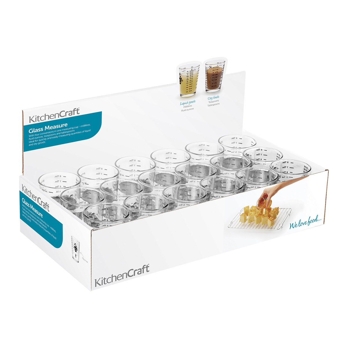 KitchenCraft Glass 8cm Measures, 120ml, Display of Eighteen