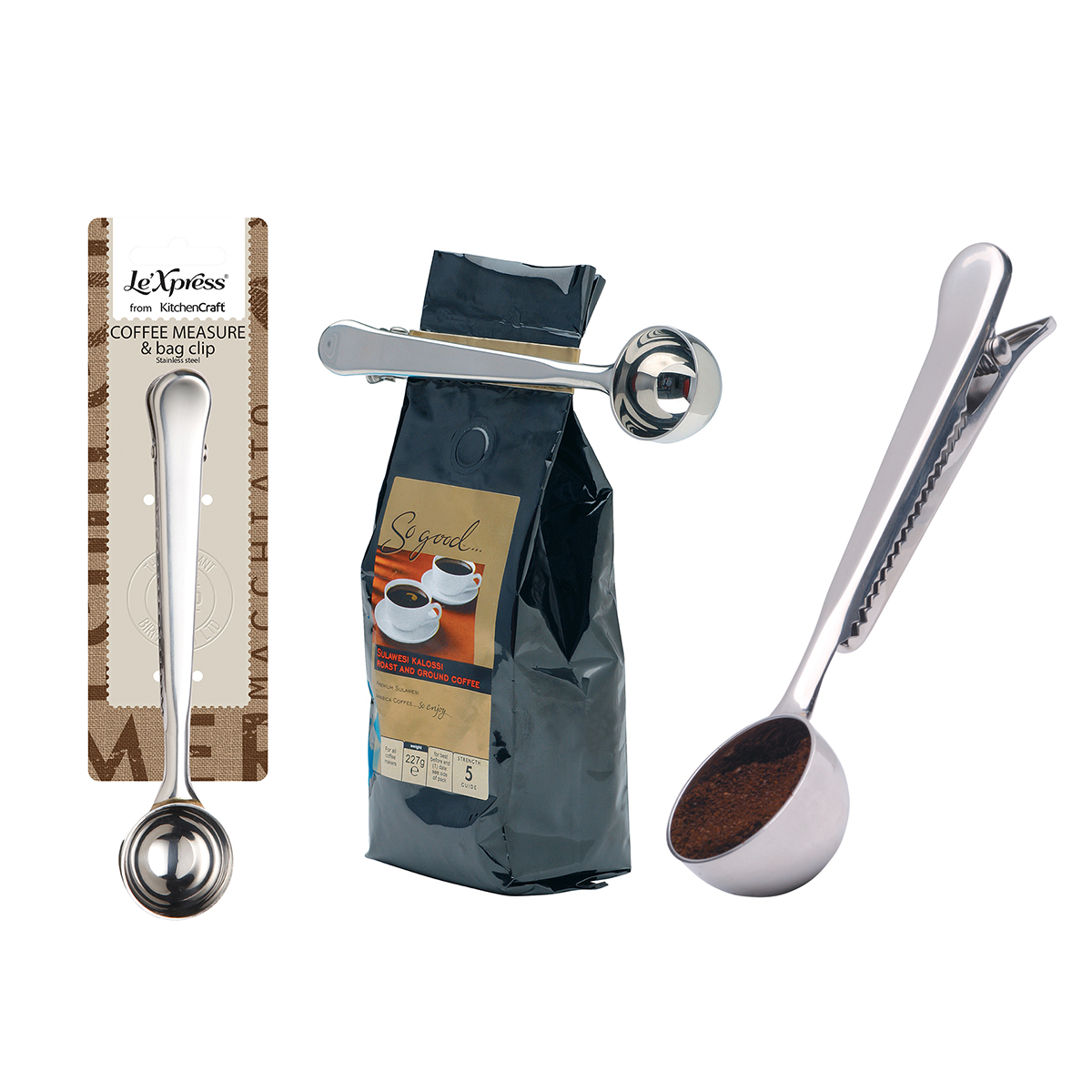 KitchenCraft Le’Xpress Stainless Steel Coffee Measure and Bag Clip, Carded