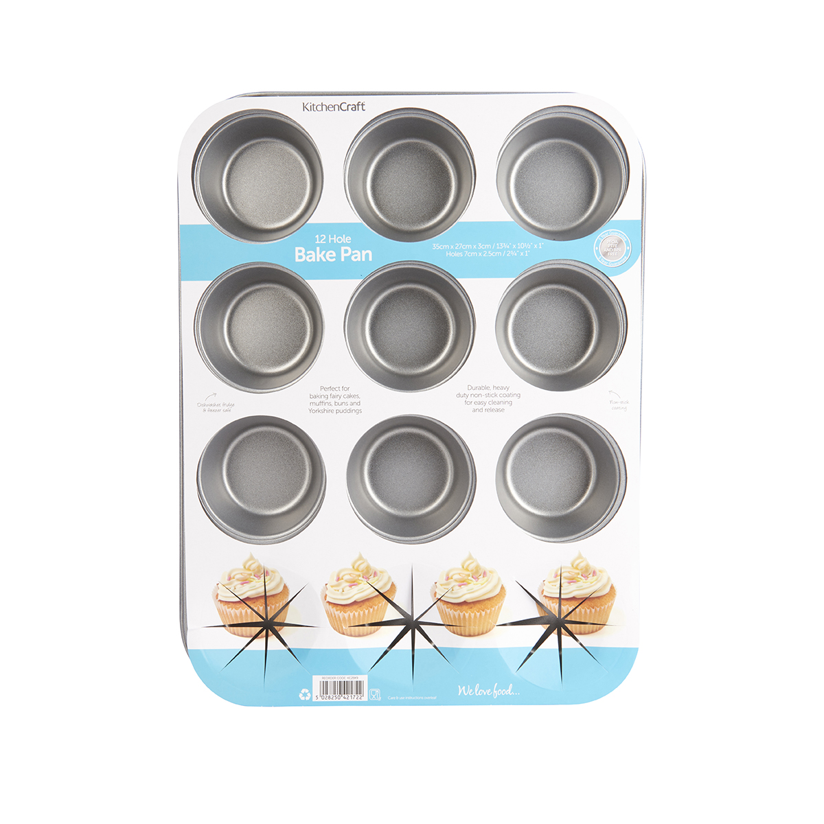 KitchenCraft Non-Stick Twelve Hole Bake Pan 35x27cm, Card Insert