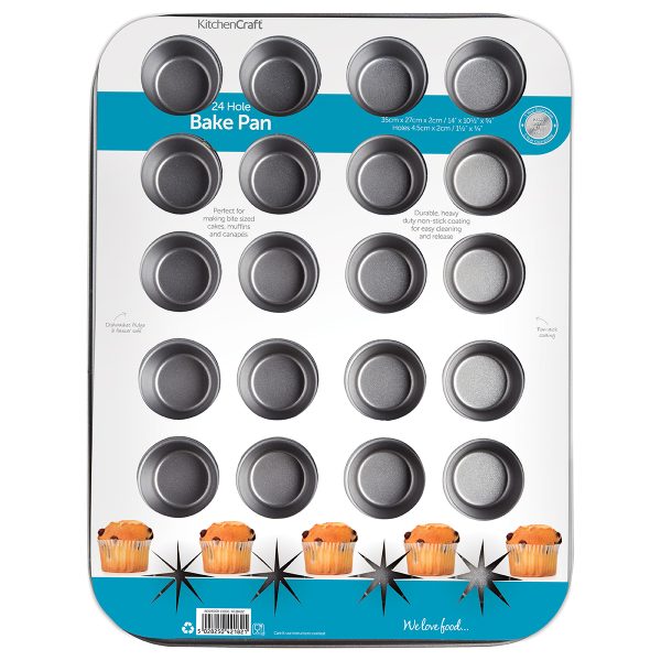 KitchenCraft Non-Stick Twenty-Four Hole Mini Bake Pan, 35x27cm, Card Insert