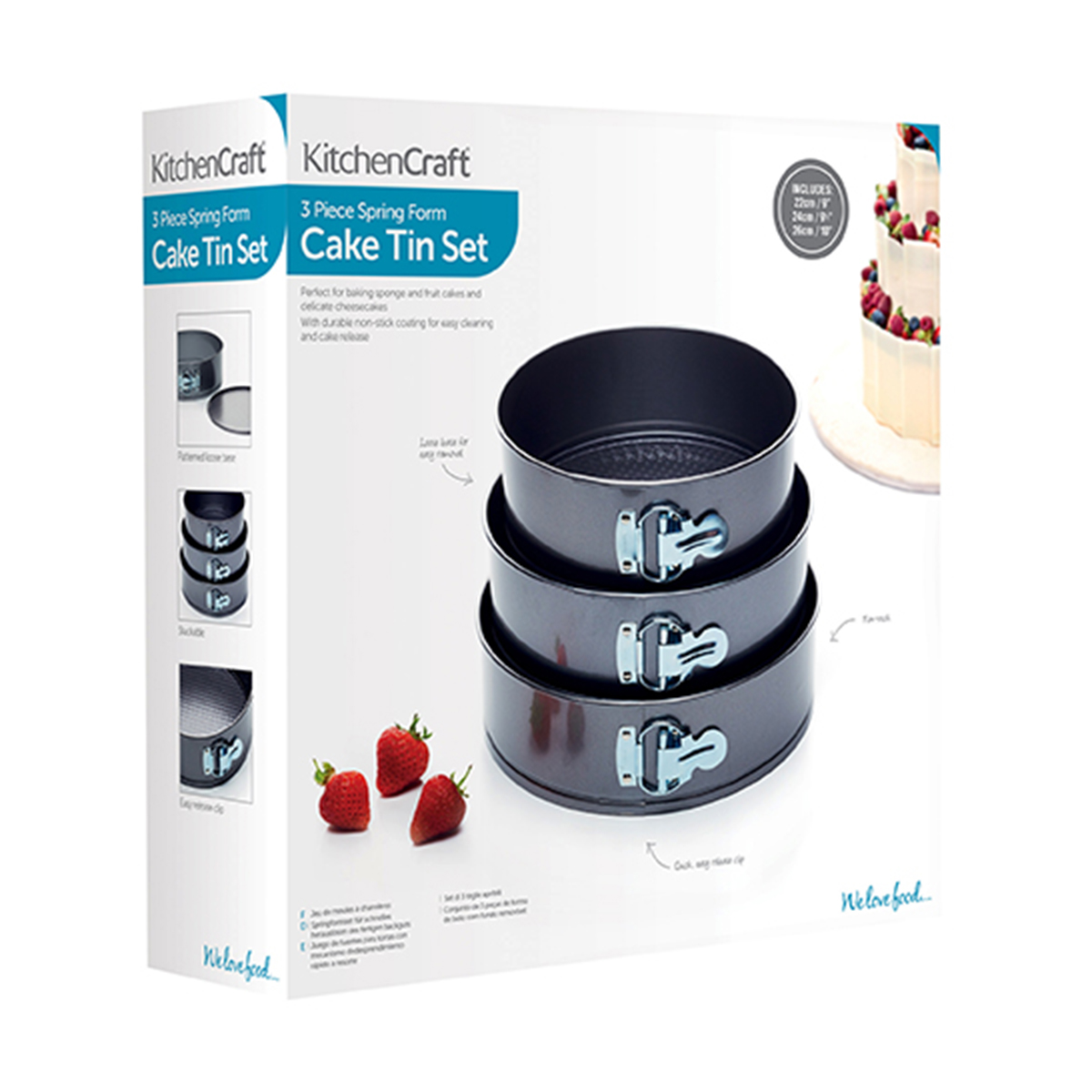 Kitchencraft Springform Non Stick Cake Pan, Black, Set of 3