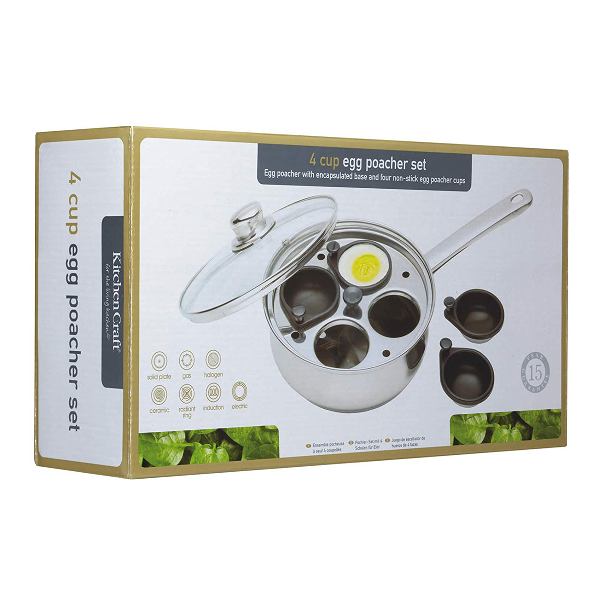 KitchenCraft Stainless Steel Four Hole Egg Poacher 20.5cm (8″), Gift Boxed