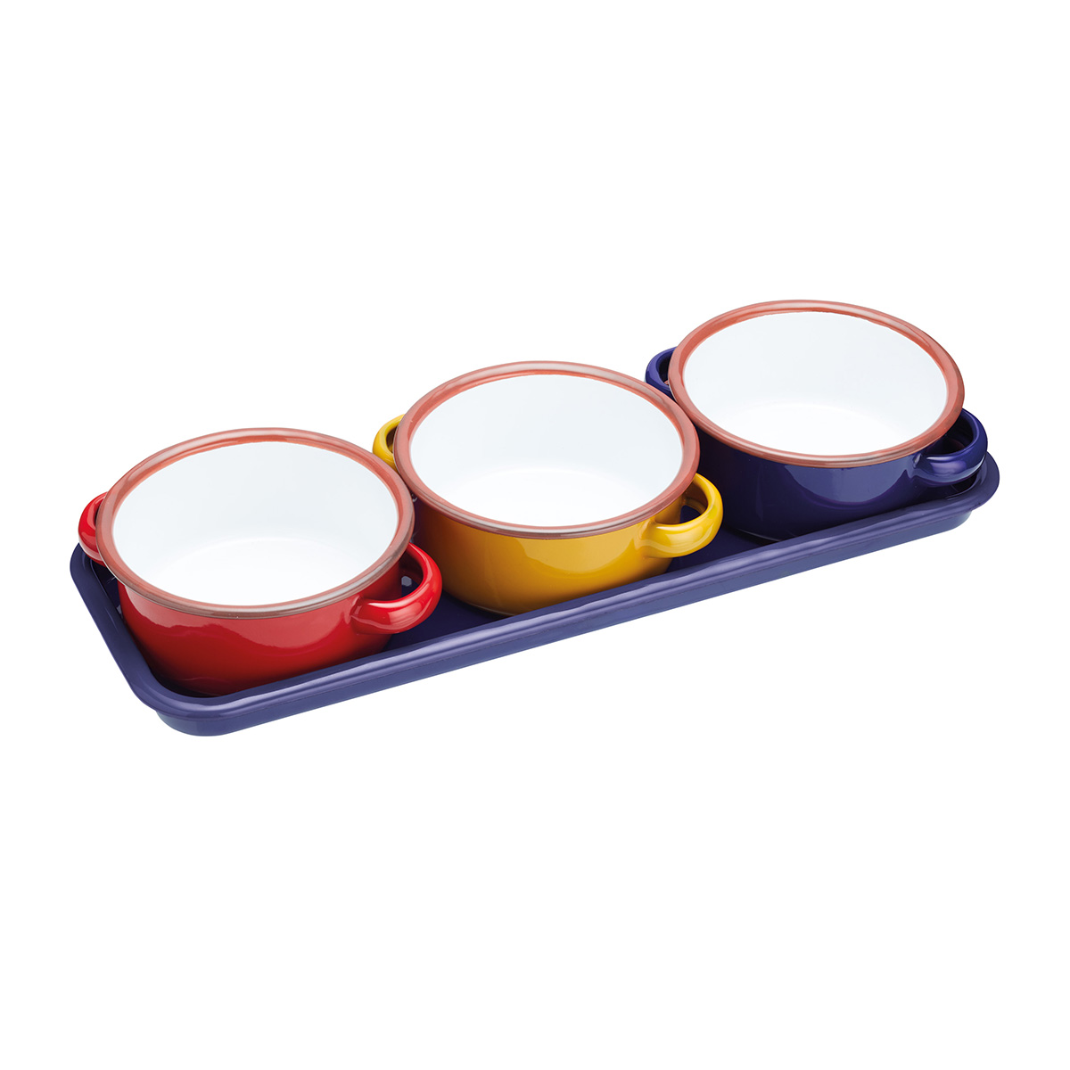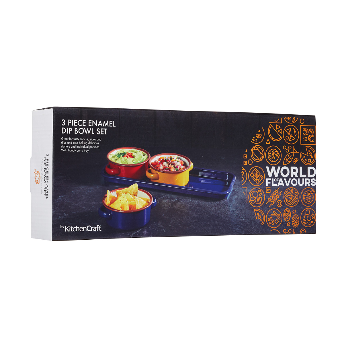 KitchenCraft World of Flavours Enamel Dip Set, Set of Three, 11cm/350ml, Gift Boxed