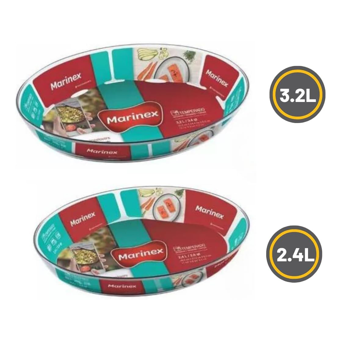MARINEX Glass 2-Piece Oval Roaster Set (2.4L + 3.2L)|Heat-Resistant Borosilicate Bakeware Dishes|Transparent Oven