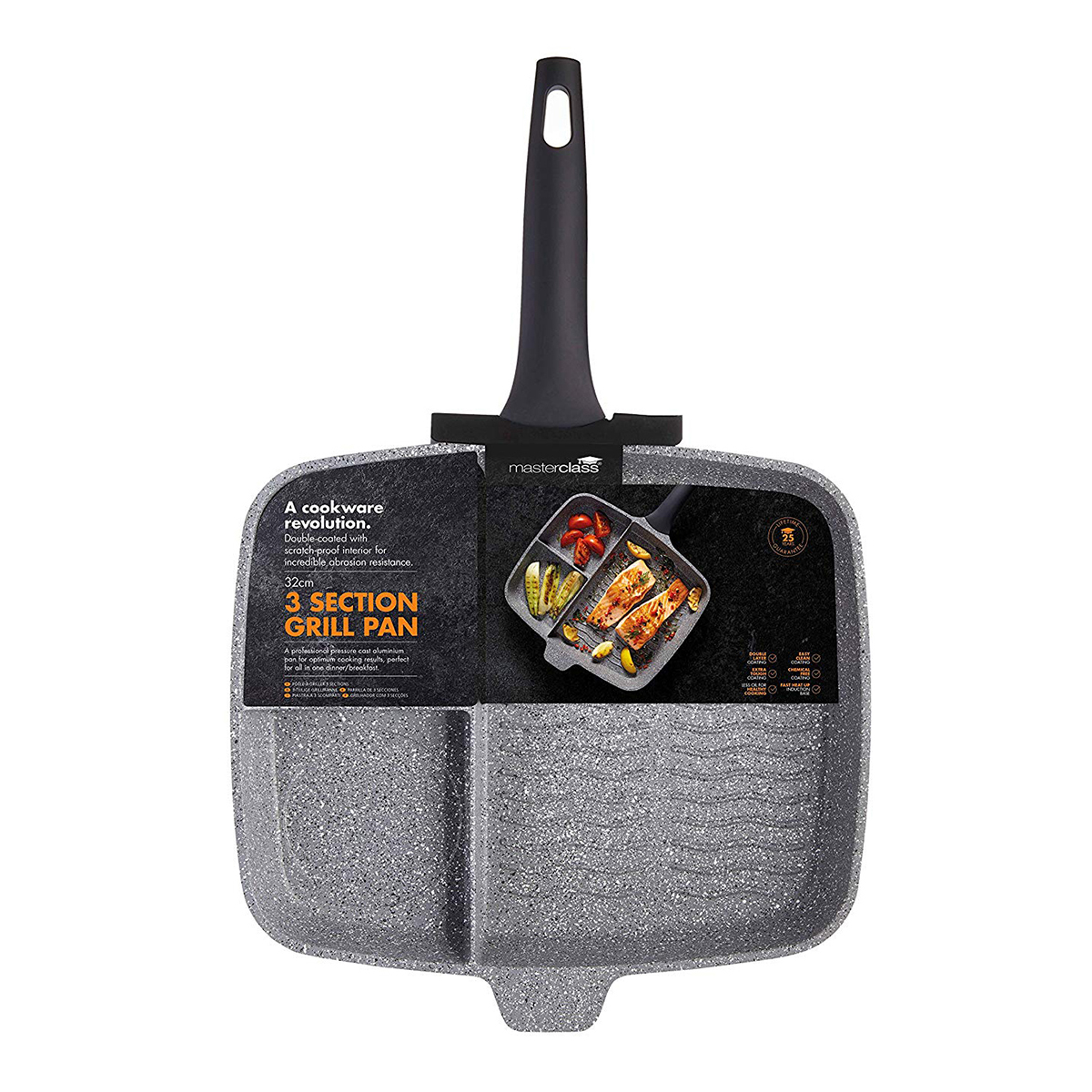 MasterClass Cast Aluminium Three Section Grill Pan 32cm, Sleeve