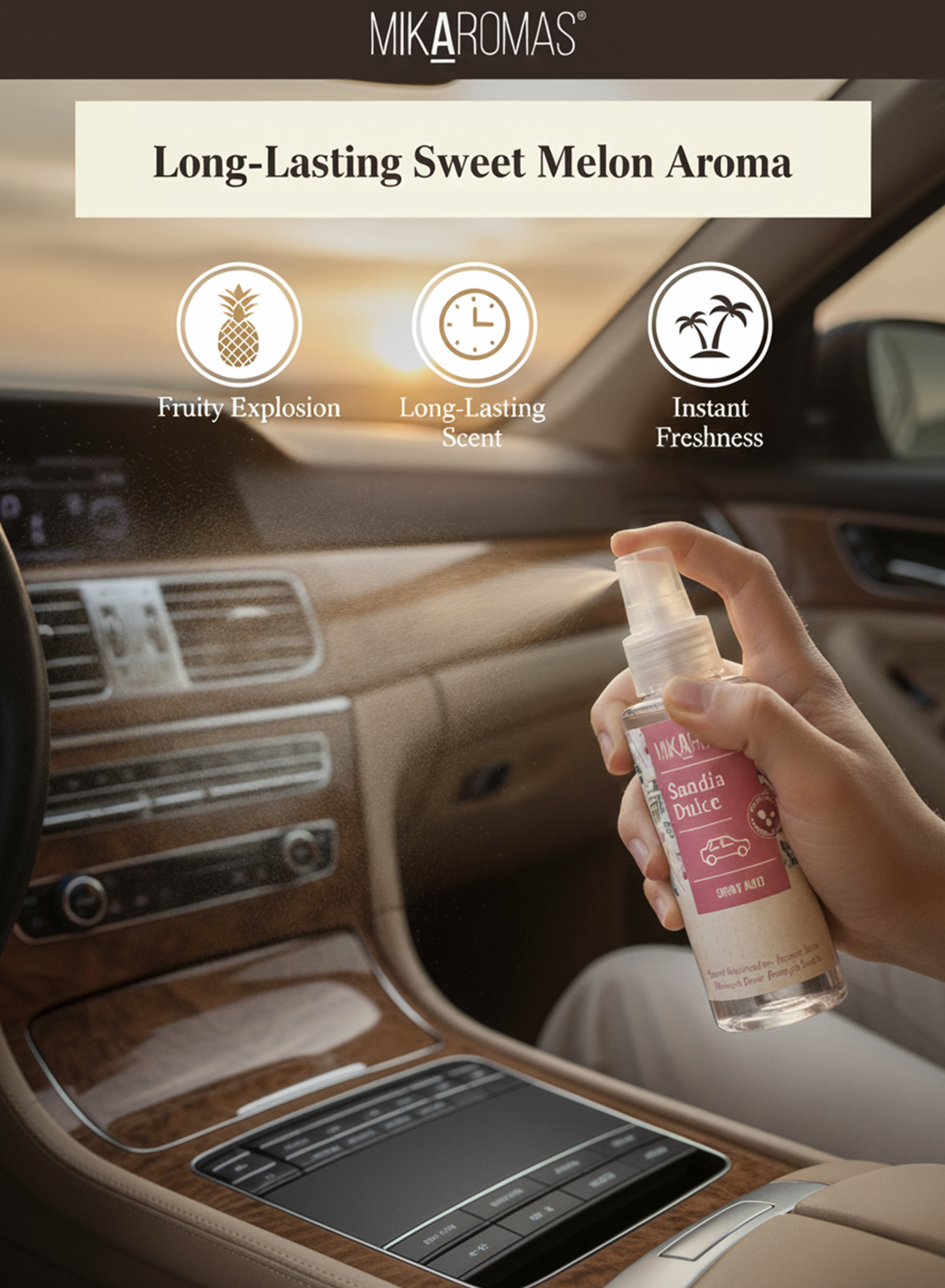 Mikaromas Car Spray – Sweet Melon, 100ml |Long-Lasting Automotive Air Freshener|Juicy, Sweet & Refreshing Melon Aroma for Cars,Trucks, SUVs&Small Indoor Spaces | Convenient Spray for Instant Freshness