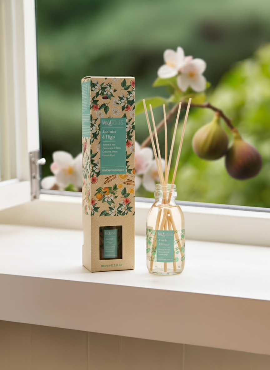 Mikaromas Reed Diffuser – Jasmine & Higo Fragrance, 95ml|Long-Lasting Aromatic Reed Diffuser Set for Home,Office & Spa|Exotic Floral&Fruity Aroma with Jasmine Blossom&Fig Notes for a Calming