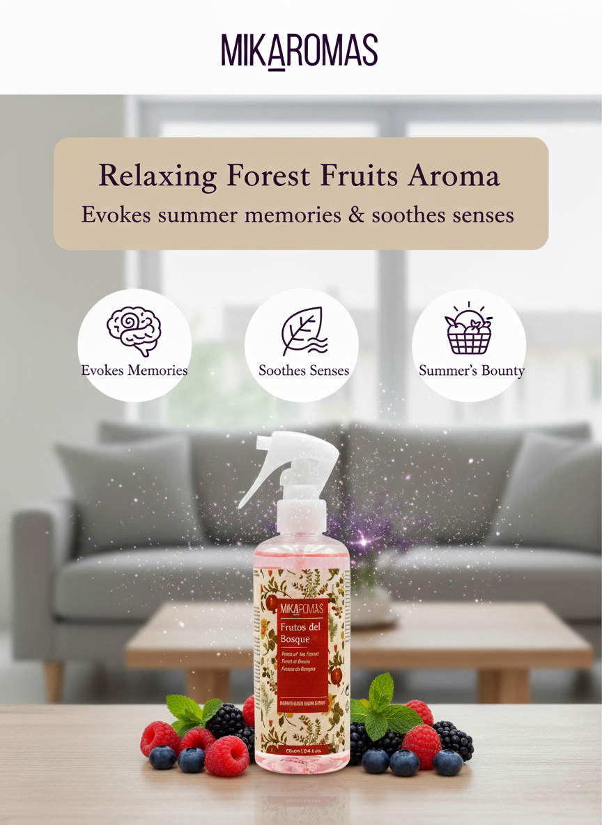 Mikaromas Room Spray Forest Fruits, 250ml | Long-Lasting Home & Office Air Freshener | Sweet, Juicy & Fruity Berry Fragrance for Fresh, Inviting & Energizing Ambience