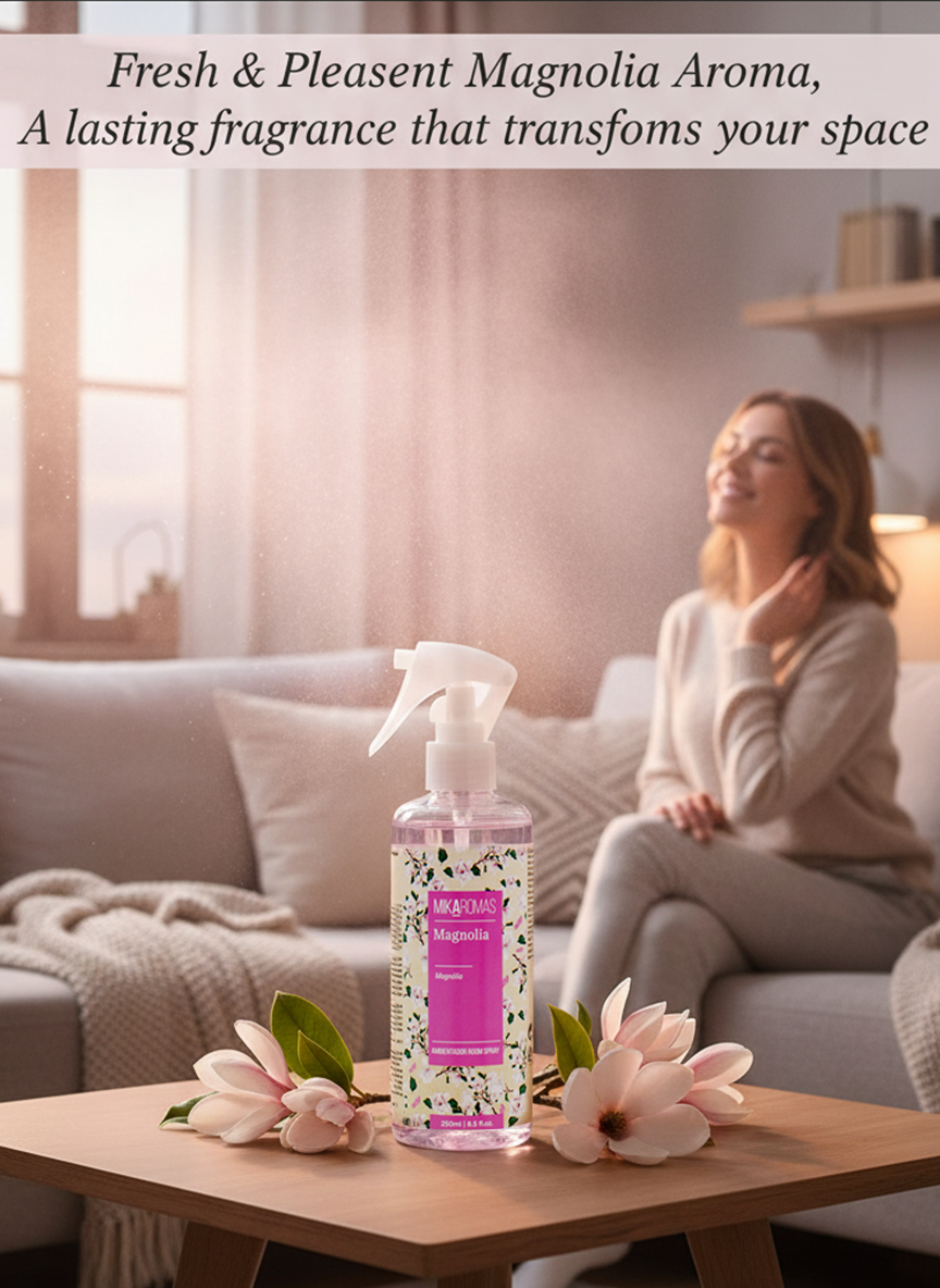Mikaromas Room Spray – Magnolia, 250ml | Long-Lasting Home & Office Air Freshener | Elegant Floral Magnolia Fragrance for Fresh, Calming & Luxurious Ambience