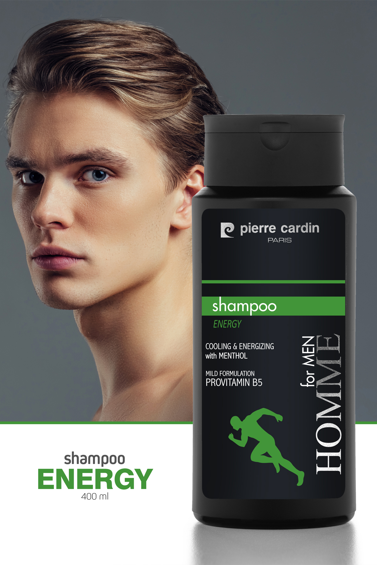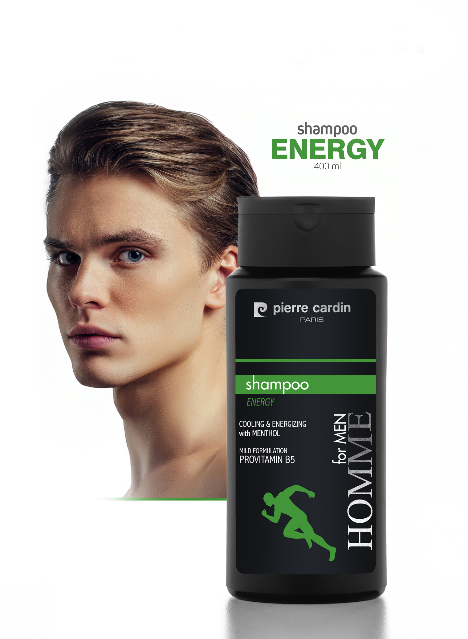 Refresh your senses and energize your hair with Pierre Cardin Energy Shampoo for Men, specially formulated to deliver a cooling, revitalizing experience every time you shower. Infused with Menthol, this shampoo awakens your scalp with an instant cooling sensation that removes dirt, sweat, and excess oil — perfect for active men who seek freshness and cleanliness all day long. Enhanced with Provitamin B5, it strengthens hair from root to tip while maintaining softness, shine, and natural hydration. The mild formulation makes it suitable for everyday use, ensuring your hair feels clean, healthy, and energized without dryness. This shampoo is part of the Pierre Cardin Homme Collection, designed for the modern man who values style, confidence, and daily performance.