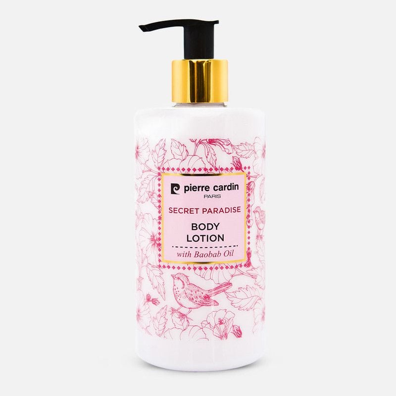 Pierre Cardin Paris Secret Paradise Body Lotion with Baobab Oil Deep Moisturizing, Nourishing & Smoothing Lotion for Soft, Radiant & Hydrated Skin Long-Lasting Floral Fragrance 350ml