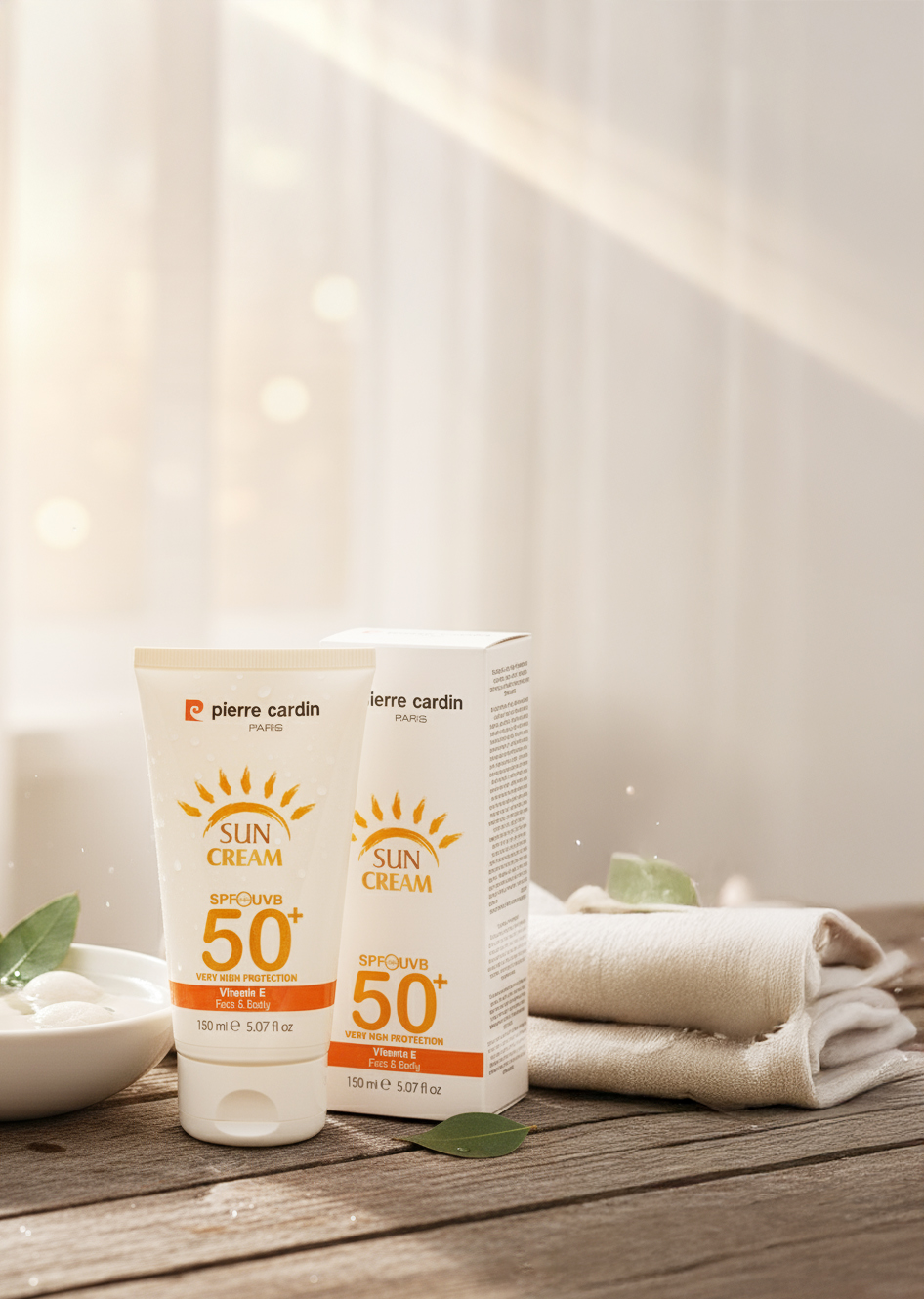 Protect your skin from harmful sun exposure with Pierre Cardin Sun Cream SPF 50+, specially formulated for both face and body. This advanced sunscreen offers very high UVA/UVB protection, effectively shielding your skin from sunburn, premature aging, and dark spots. Enriched with Vitamin E, it nourishes and hydrates the skin while forming a protective barrier against environmental damage. The lightweight, non-greasy texture absorbs quickly and leaves no white residue, making it ideal for daily use under makeup or during outdoor activities. Perfect for all skin types, Pierre Cardin Sun Cream SPF 50+ ensures lasting sun protection, smooth skin feel, and a radiant, healthy glow – whether youre at the beach, on a hike, or in your daily routine.