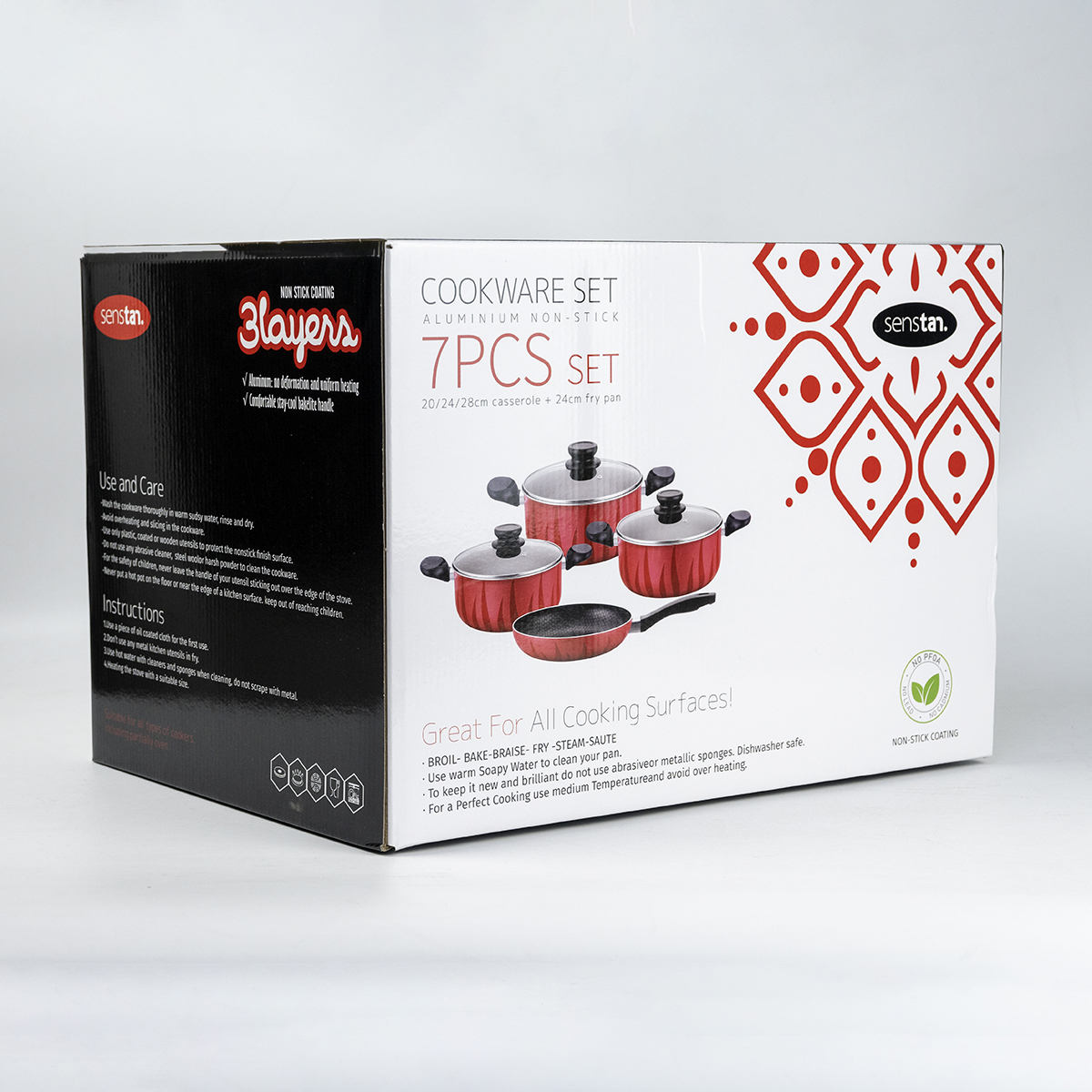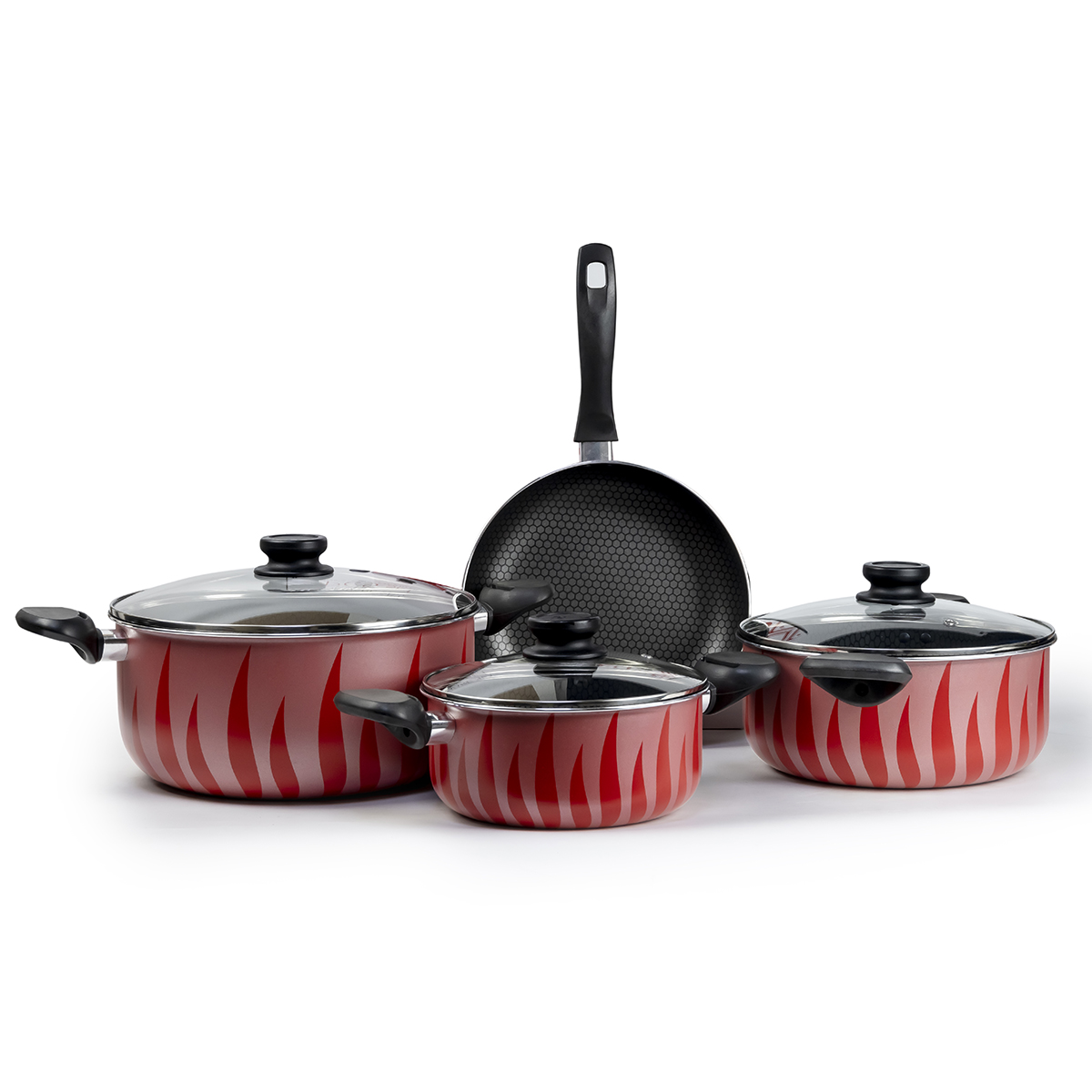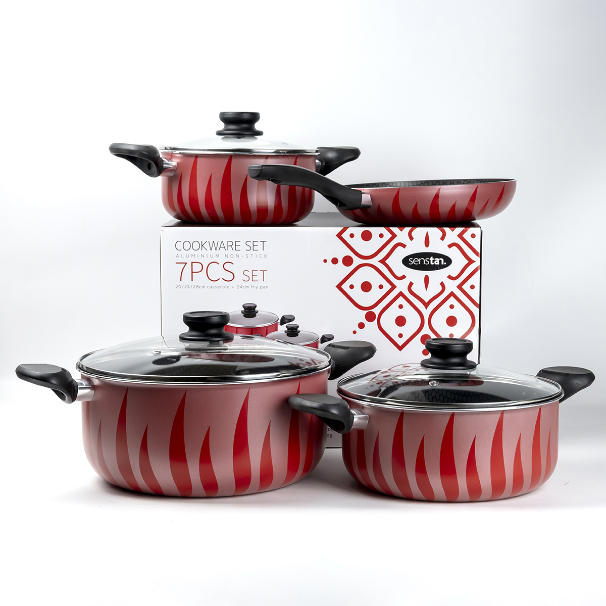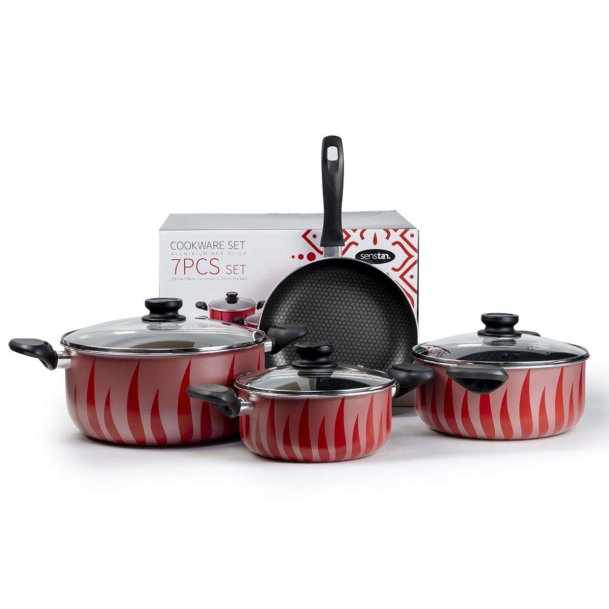 Senstan Cookware Set Flame, 7 Pieces, Red