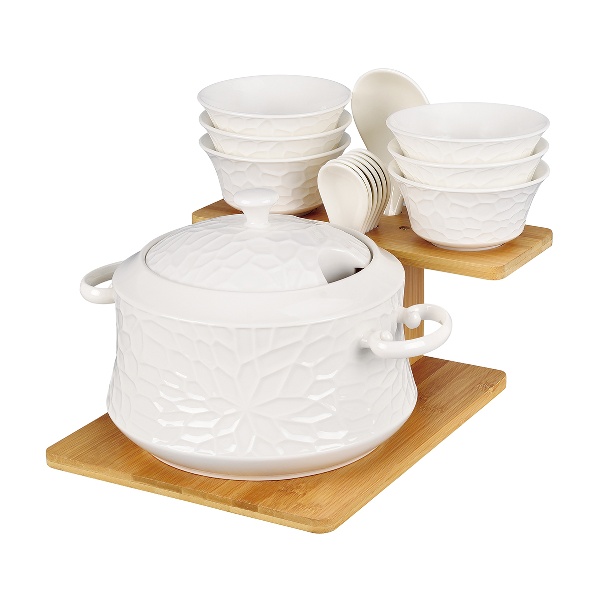 Shallow 15Pcs Soup Set W/Bamboo Stnd 36X30X23.5